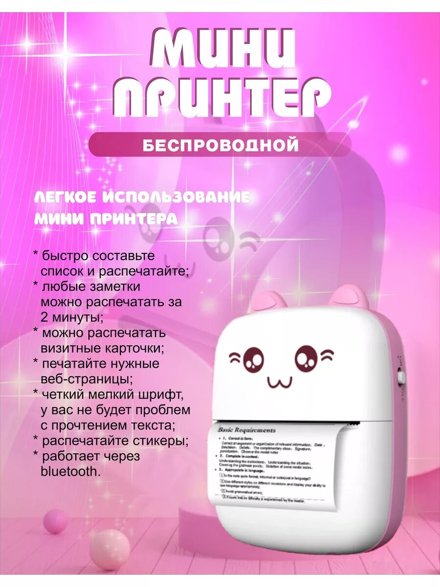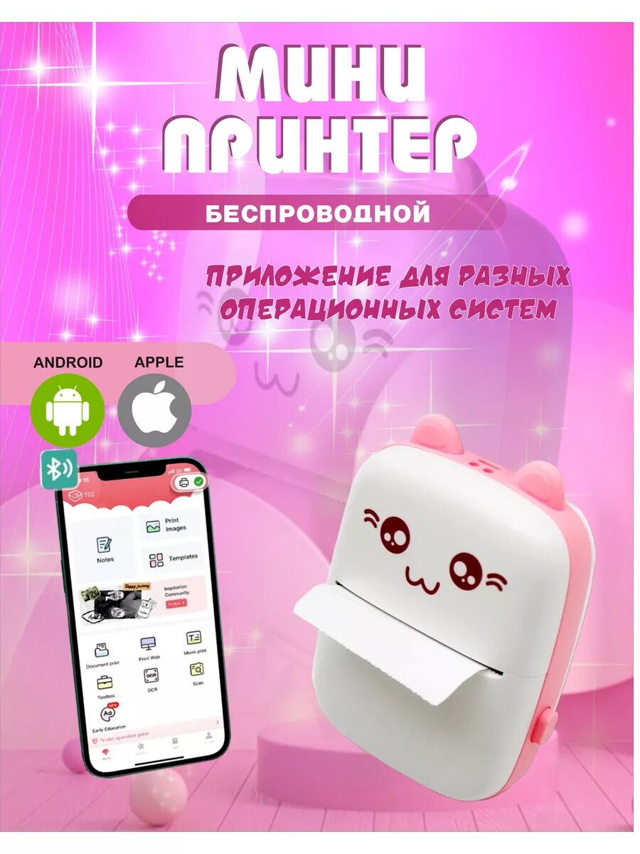 Отзывы на Удобный мини принтер для телефона портативный, (термопринтер детский для наклеек, мини-принтер), цвет светло-розовый