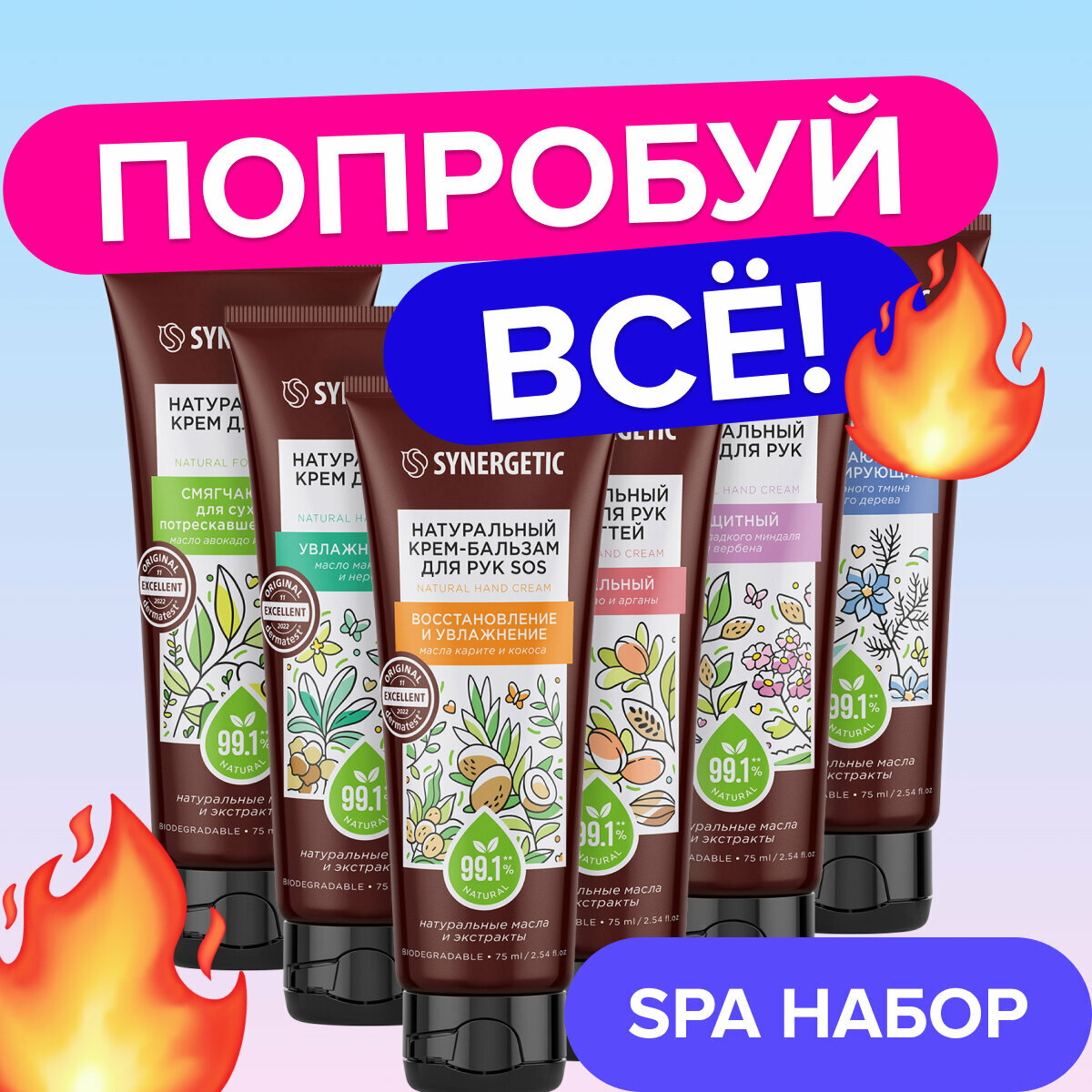10 цен на Подарочный набор натуральных кремов для рук/ног SYNERGETIC ассорти, 75 мл, 6 штук