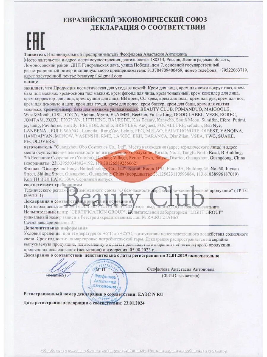 | Особенности | гипоаллергенное / не требует смывания |