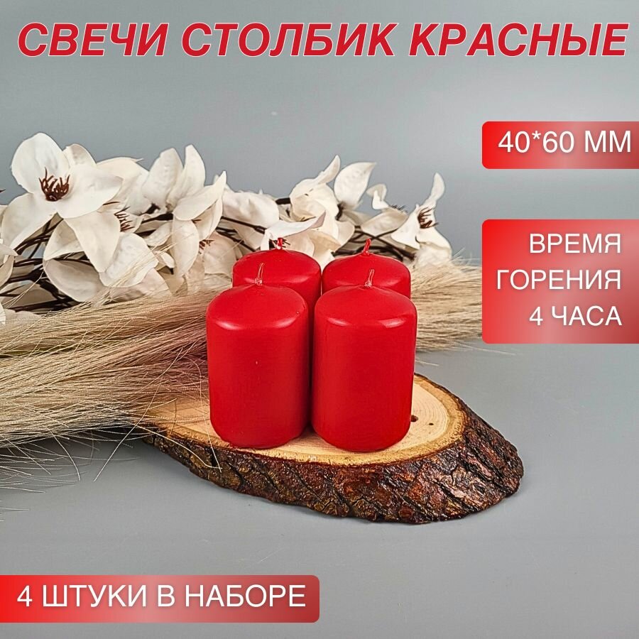10 цен на Свеча столбик/бочонок 40х60 мм, красная, время горения 4 часа, 4 шт