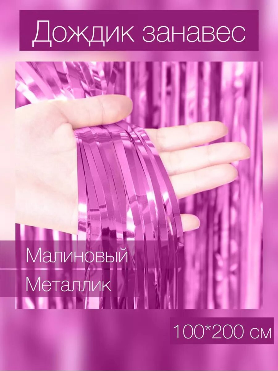 10 цен на Занавес Дождик Малиновый, Металлик, 100*200 см, 1 шт.