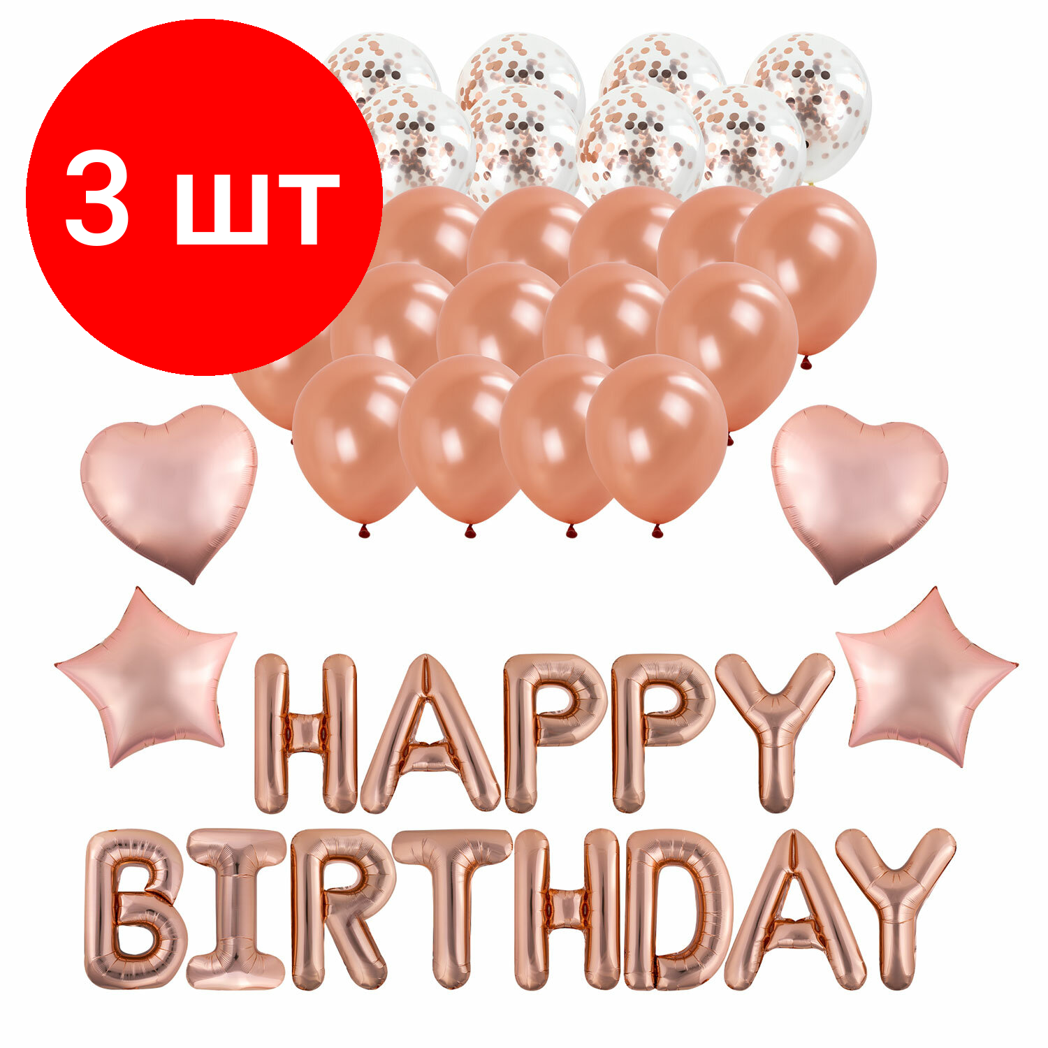 10 цен на Комплект 3 шт, Шары воздушные набор для декора "Happy Birthday", 43 шара, розовое золото, BRAUBERG KIDS, 591899