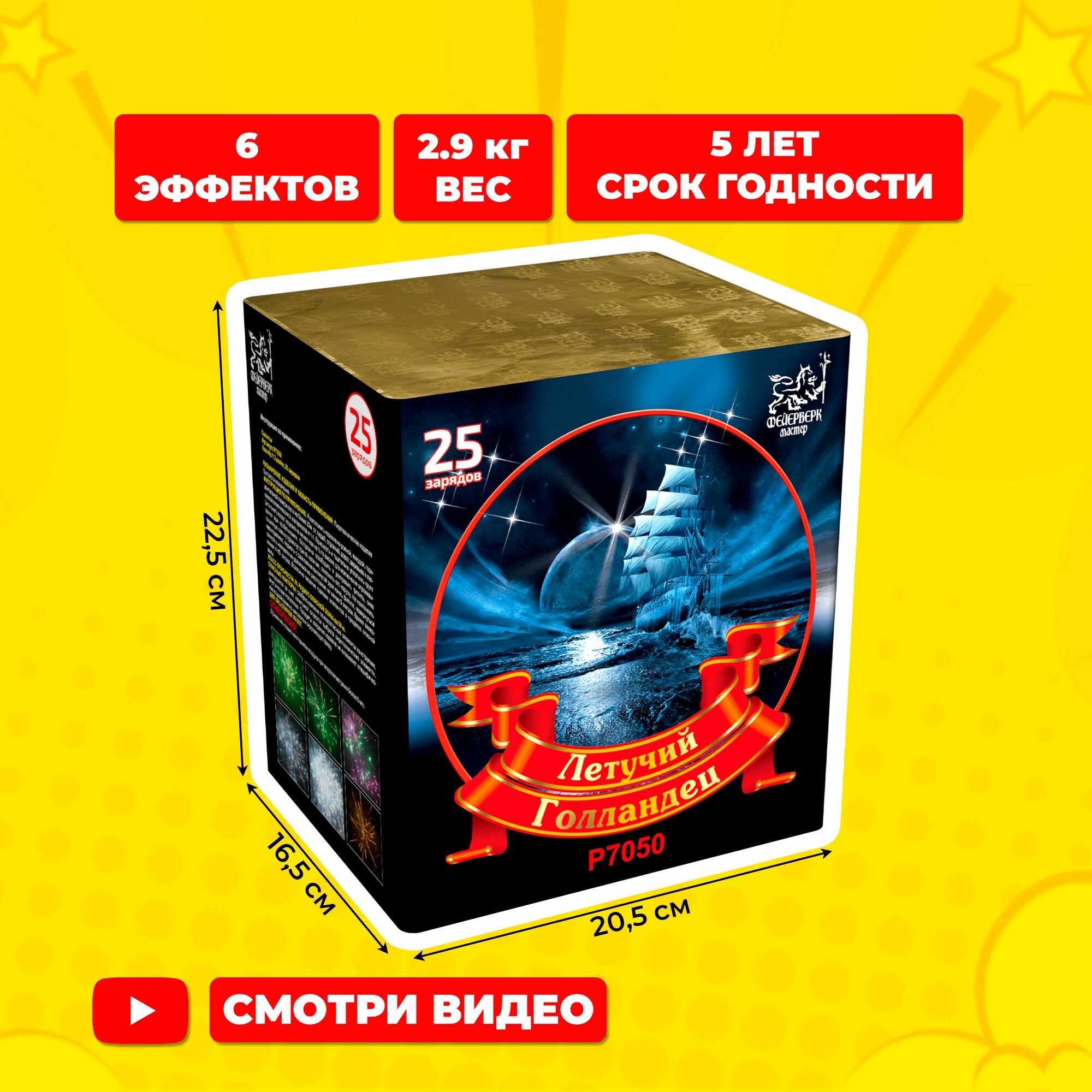 Салют фейерверк Летучий Голландец, 25 зарядов, 1.2 дюйма, P7050 информация: