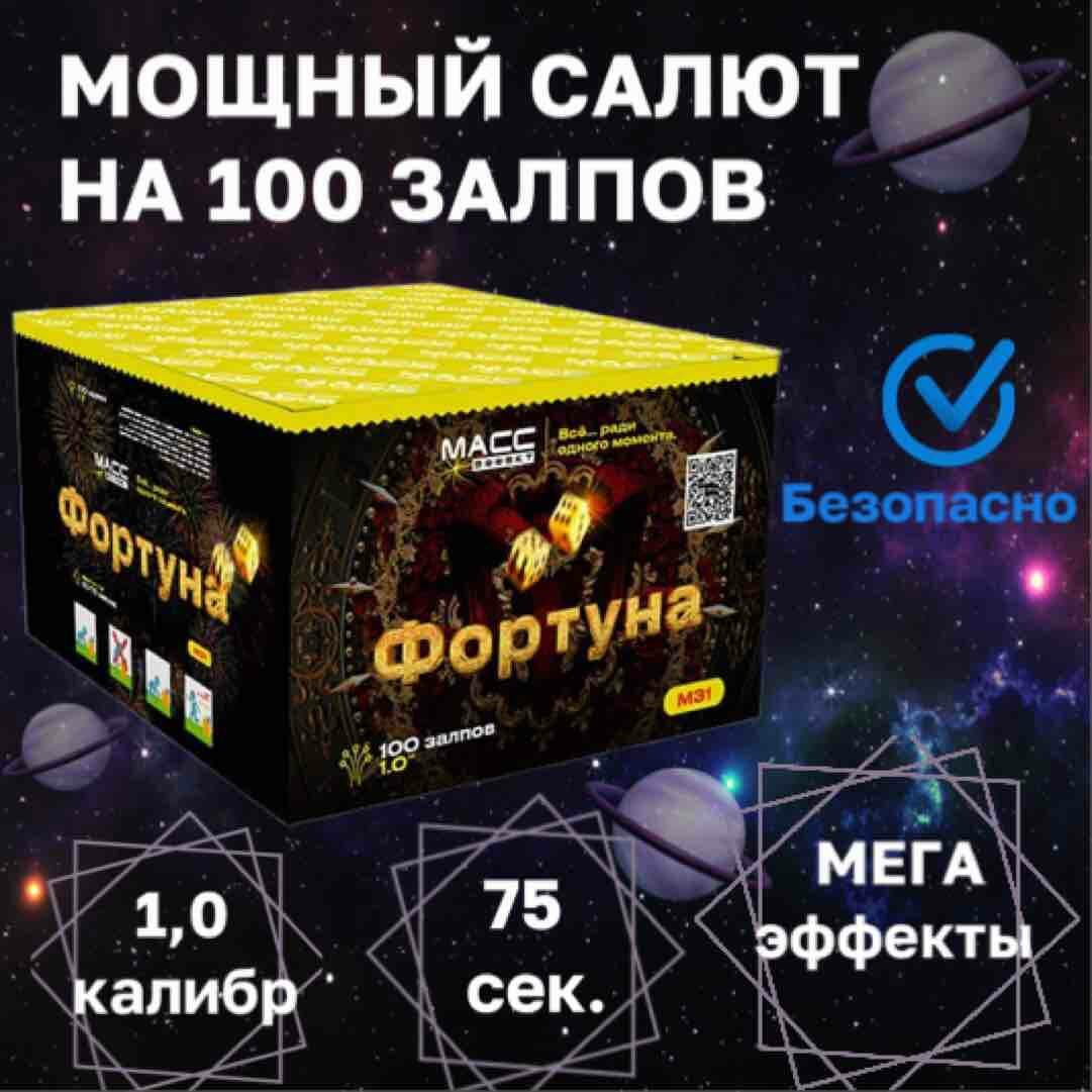 Салют фейерверк Фортуна 100 залпов. Калибр 1,0. Мощный салют информация: