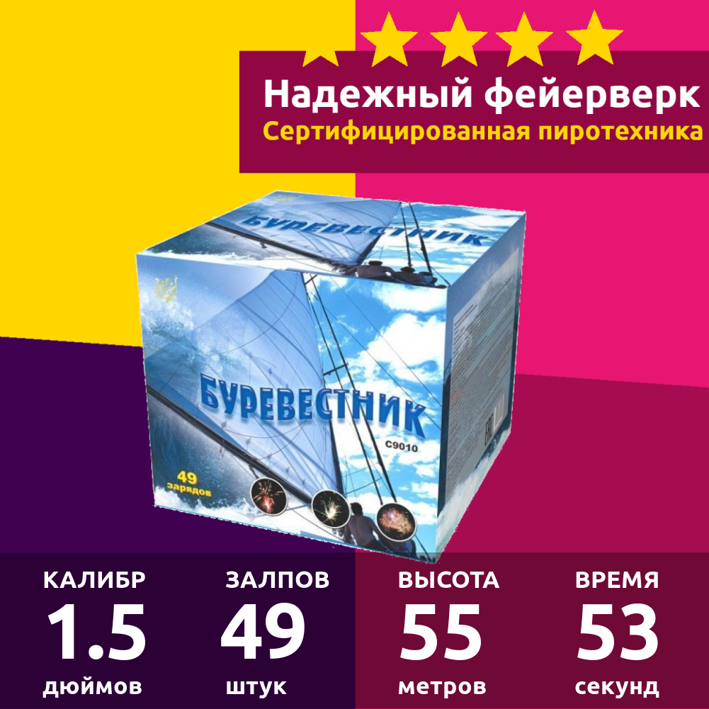 Батарея салютов Фейерверк Мастер Буревестник С9010, 49 залпов