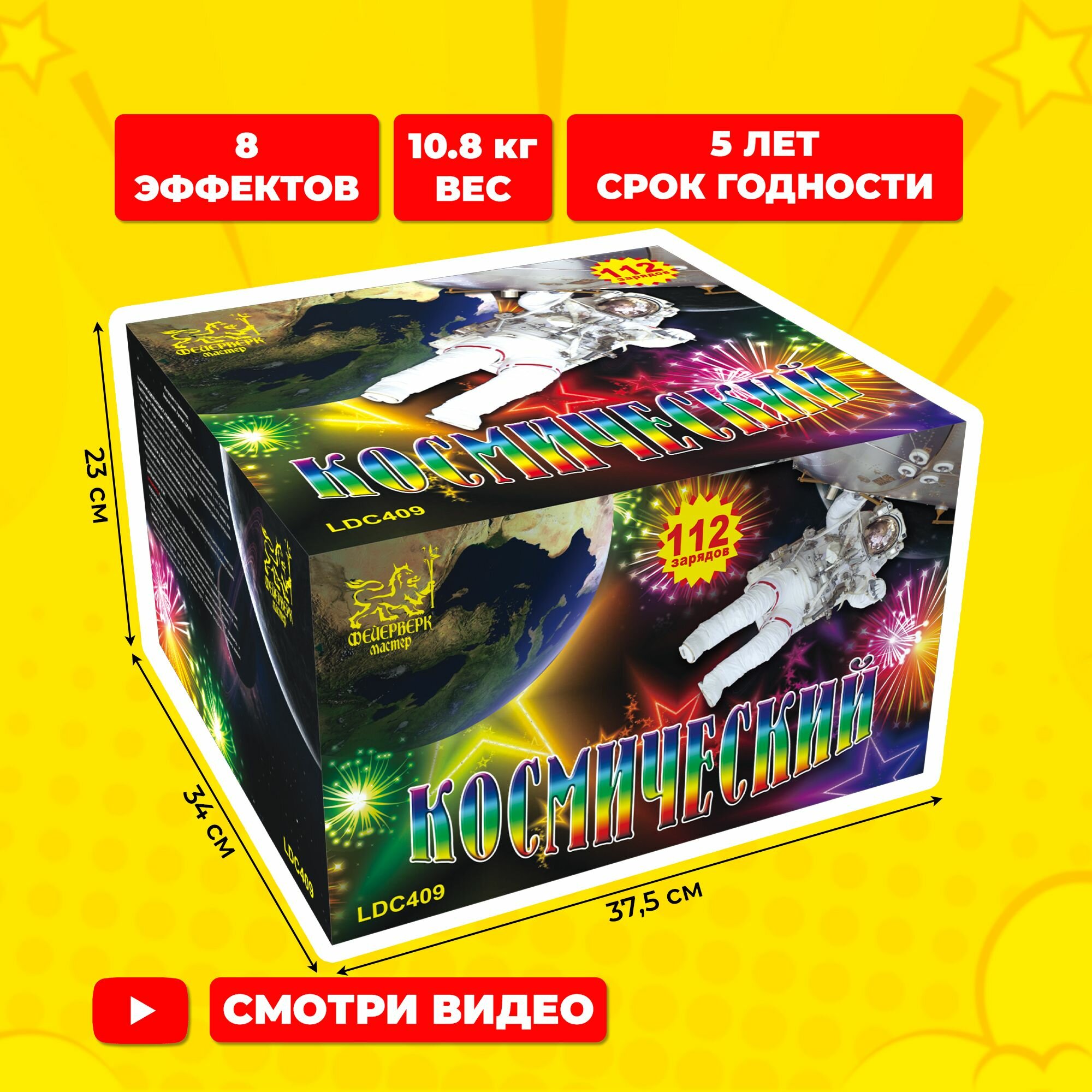 Салют фейерверк Космический, 112 зарядов, 0.8*42; 1.0*24; 1.2*30; 1.5*16 дюйма, LDC409 информация: