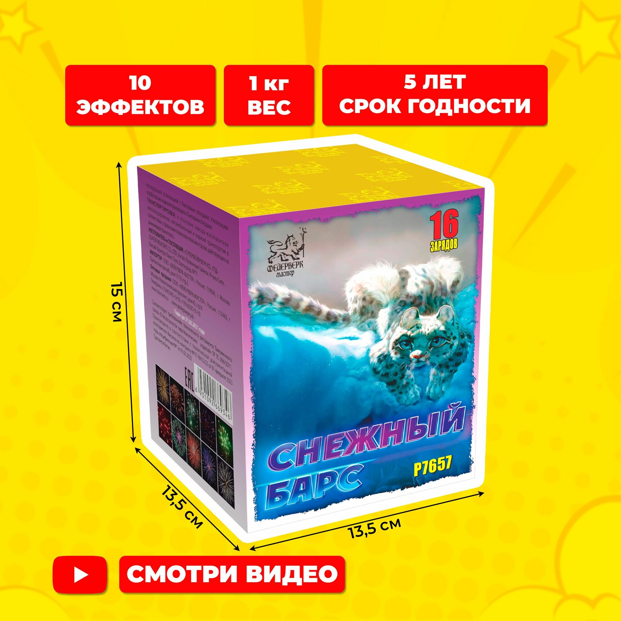 Салют фейерверк Снежный барс, 16 зарядов, 0.8 дюймов, P7657 информация: