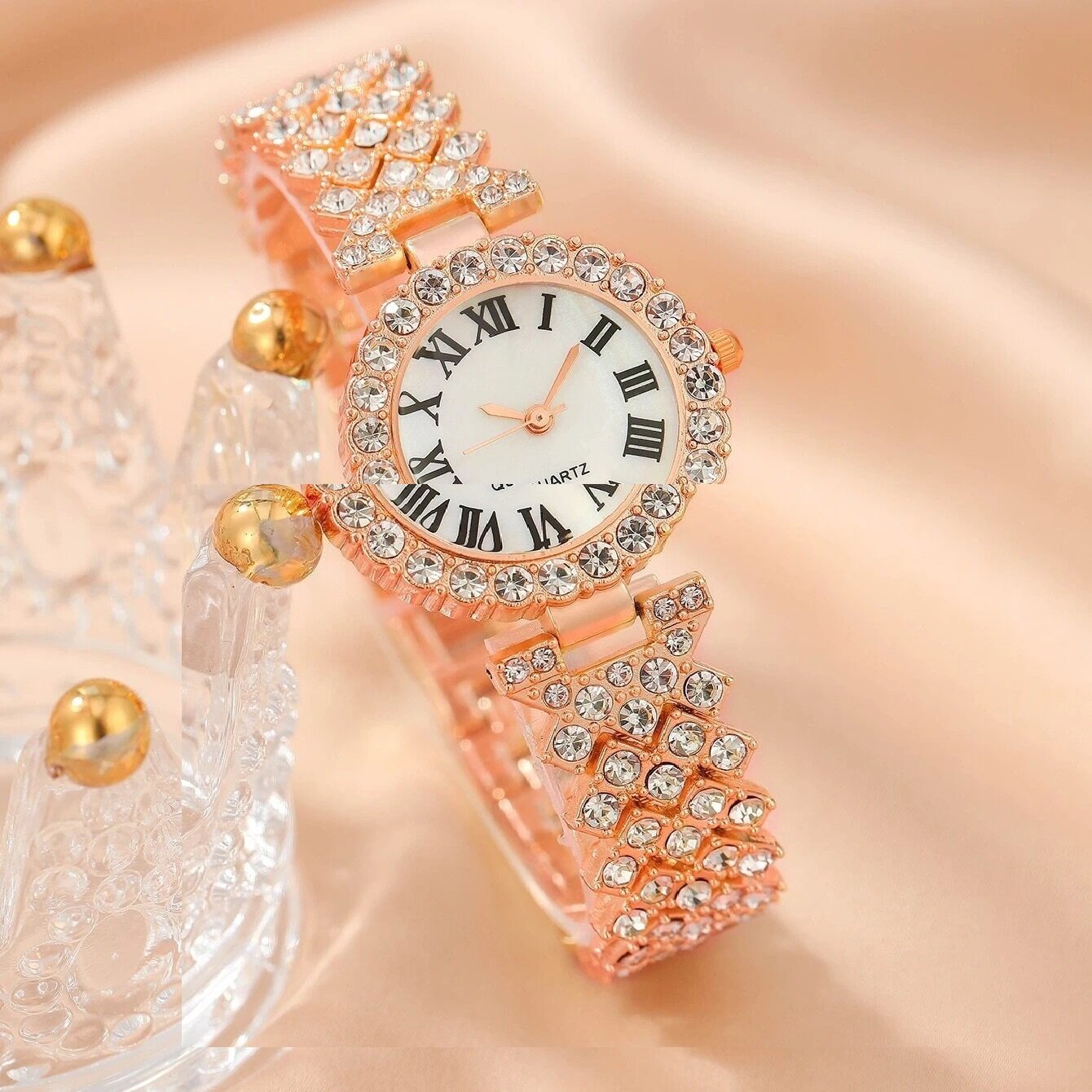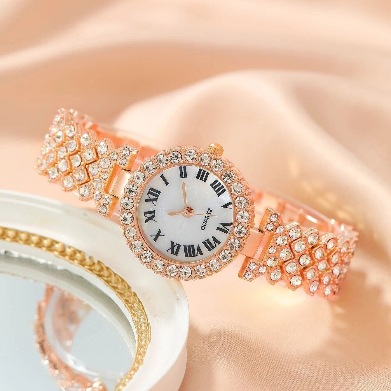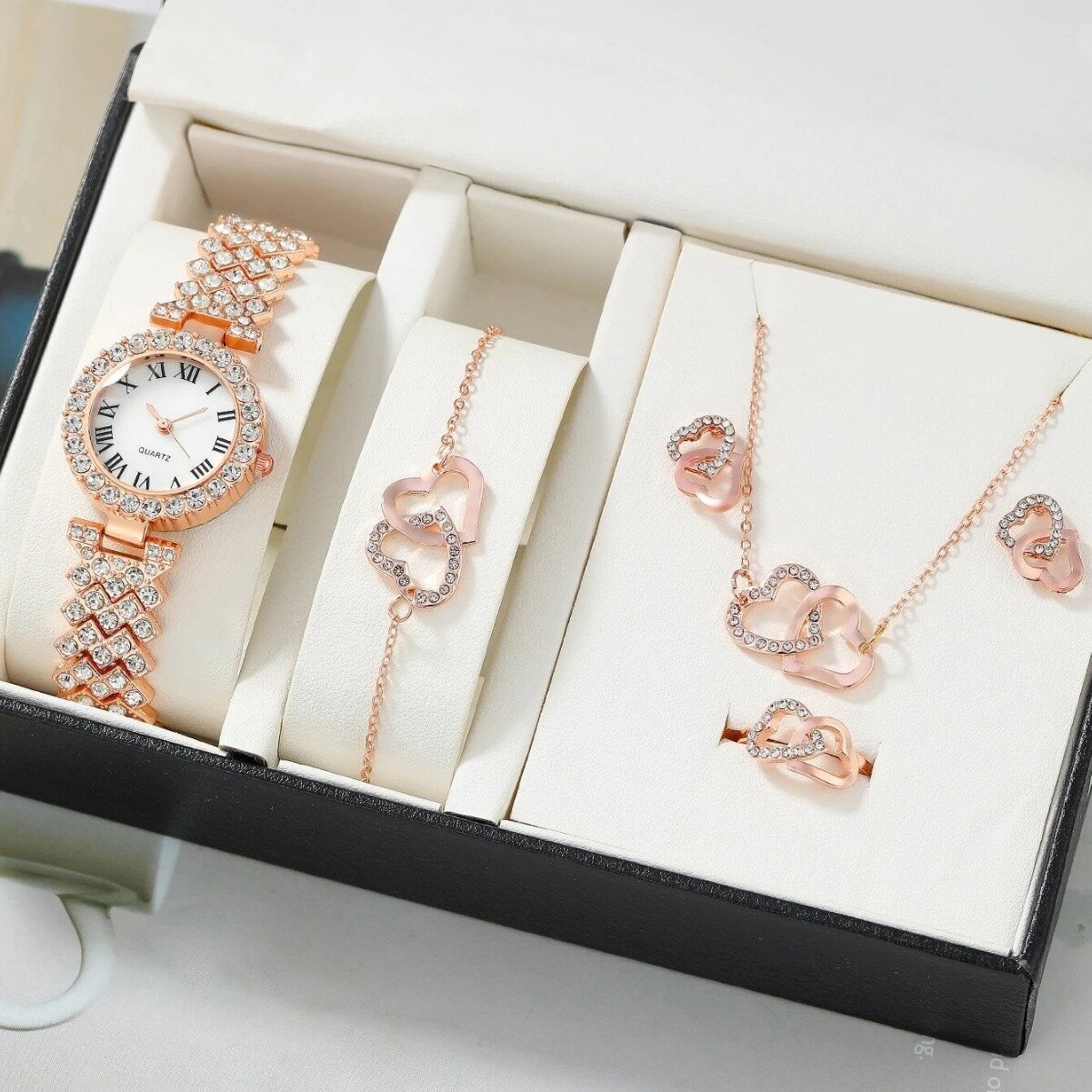 10 цен на Часы женские с браслетом цепочкой, серьгами и кольцом / часы женские кварцевые