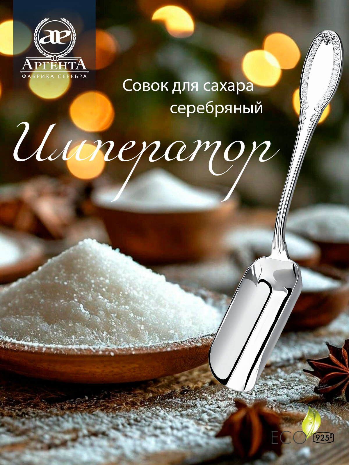 Серебряный совок для сахара "Император" в футляре информация: