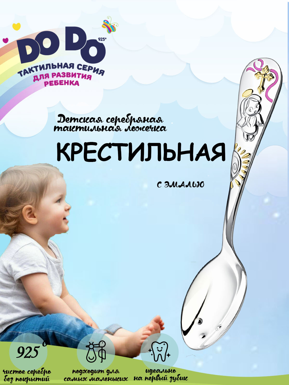 Отзывы на Ложка детская серебряная для кормления "Крестильная" с позолотой и розовой эмалью в футляре