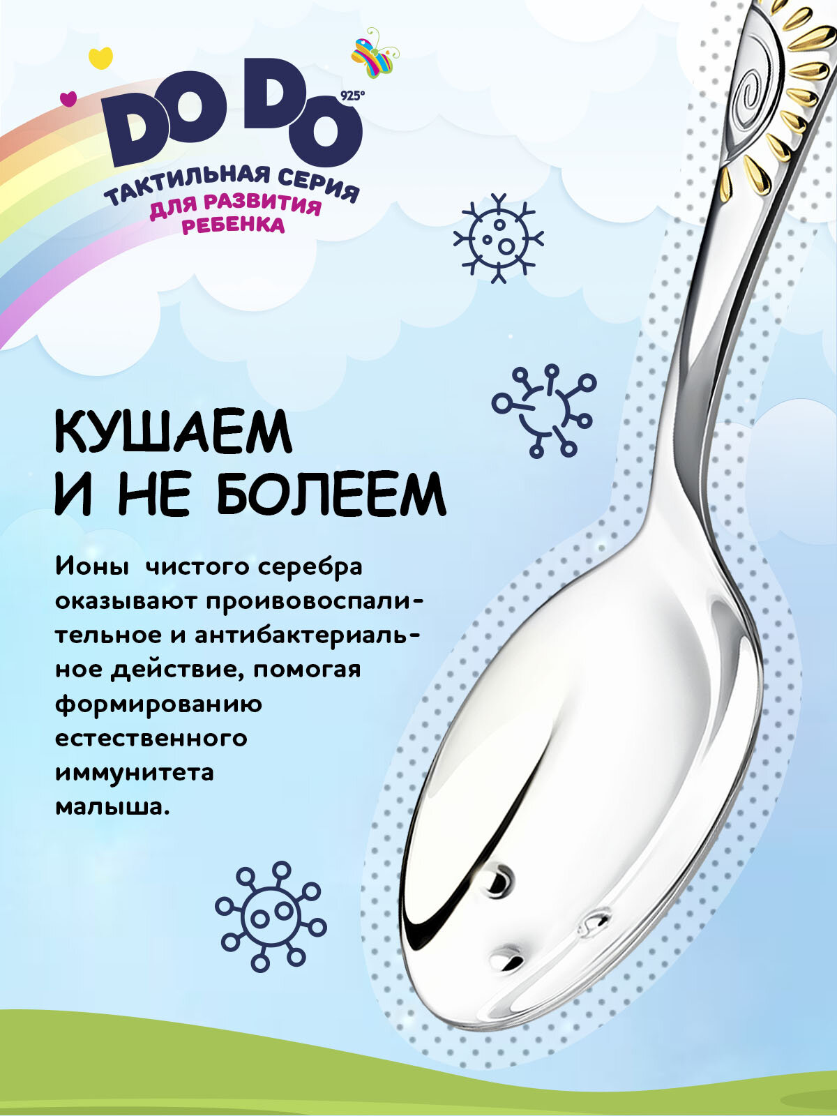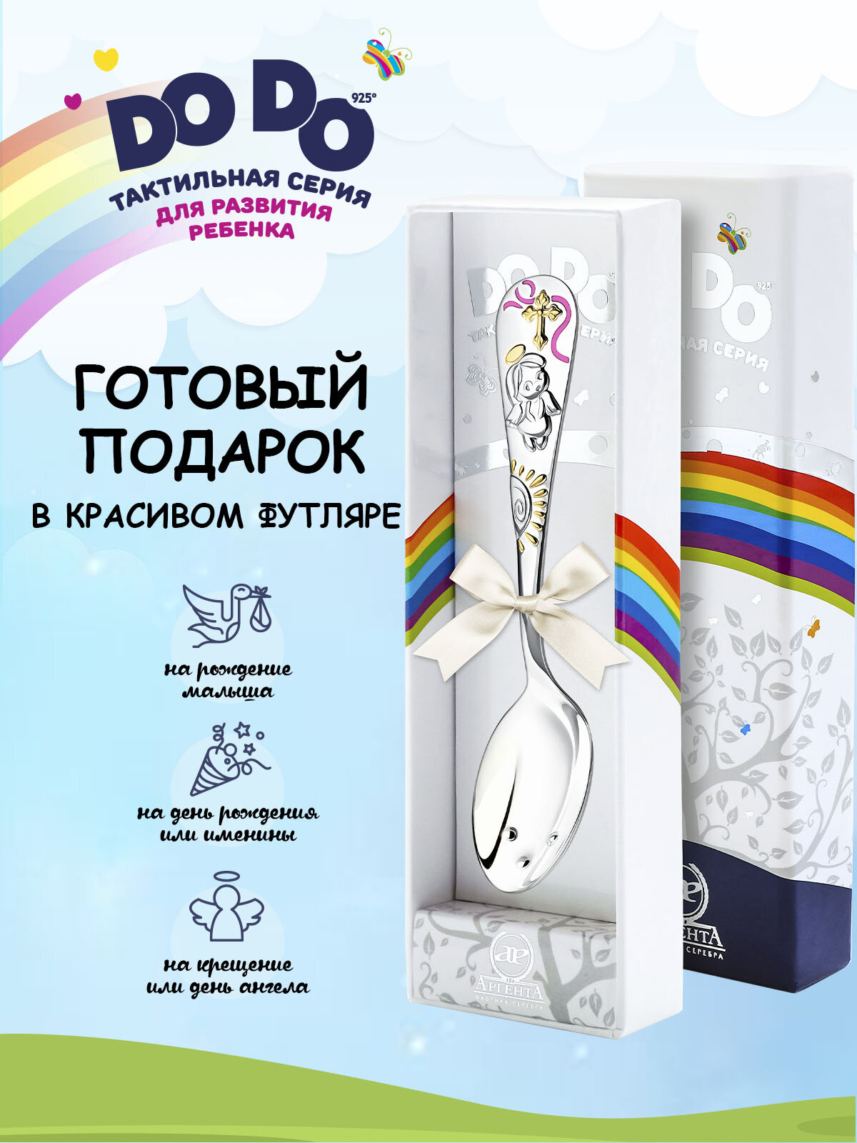 Серебряная детская ложка АргентА Сердце с цветами DoDo с футляром