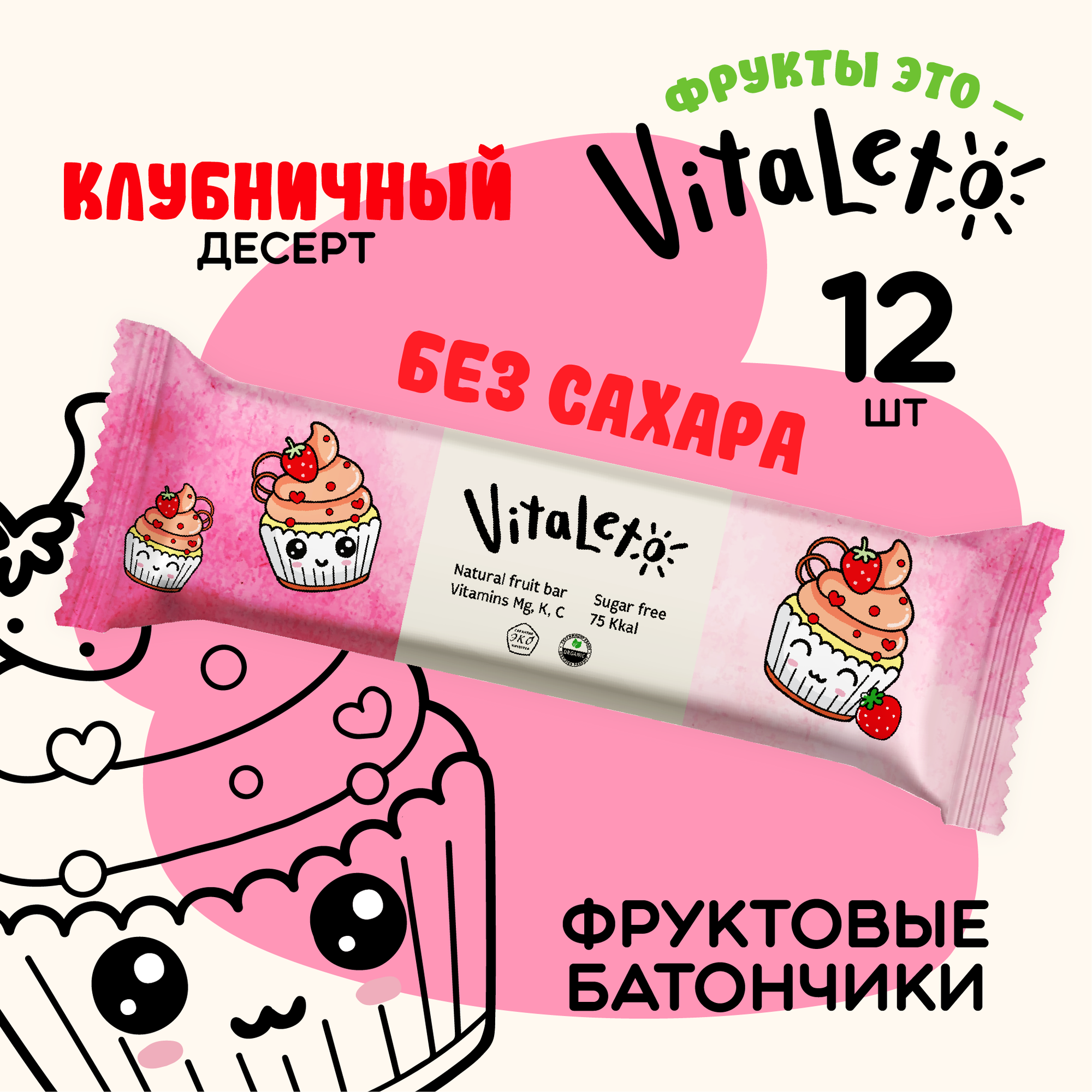Отзывы на Батончик фруктовый без сахара Vitaleto "Клубничный десерт" 30г (12шт), Виталето