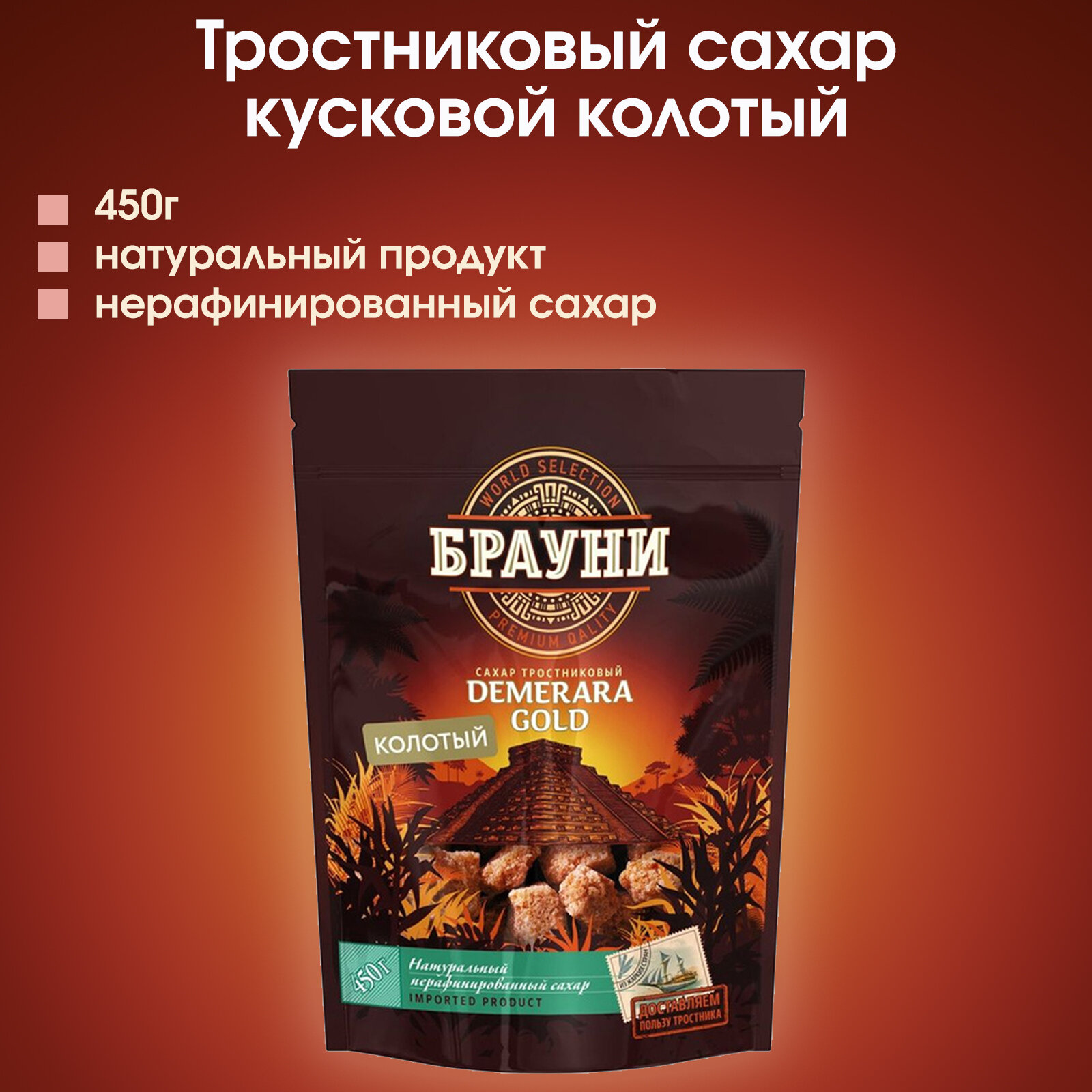 Сахар тростниковый колотый кусковой "Брауни", 1 штука 450г. информация: