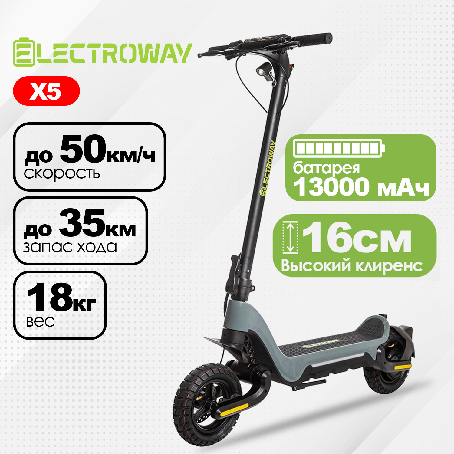 10 цен на Электросамокат Electroway X5 пробег до 35 км; скорость до 45 км/ч / 48V / 600W / 13Ah