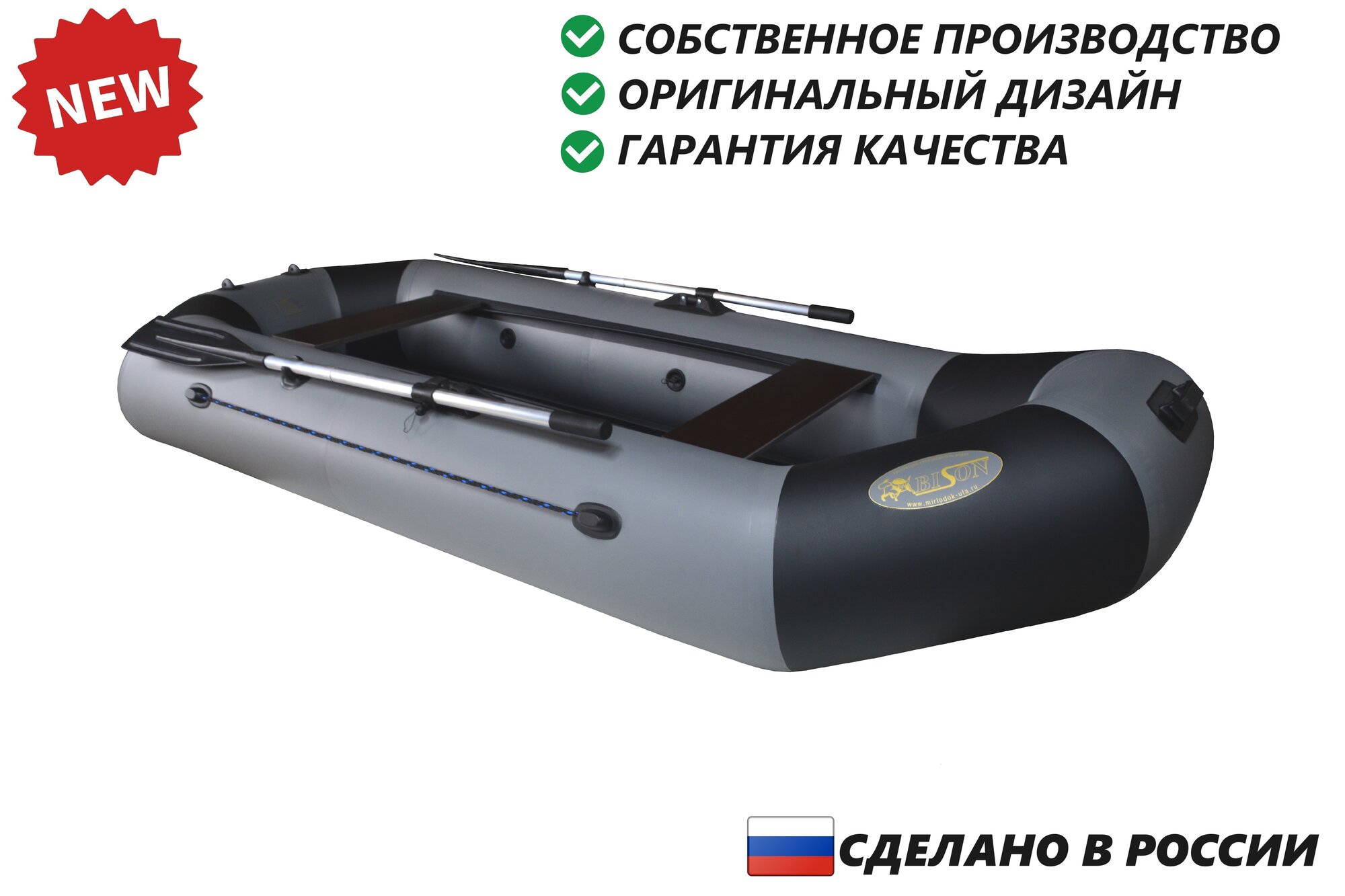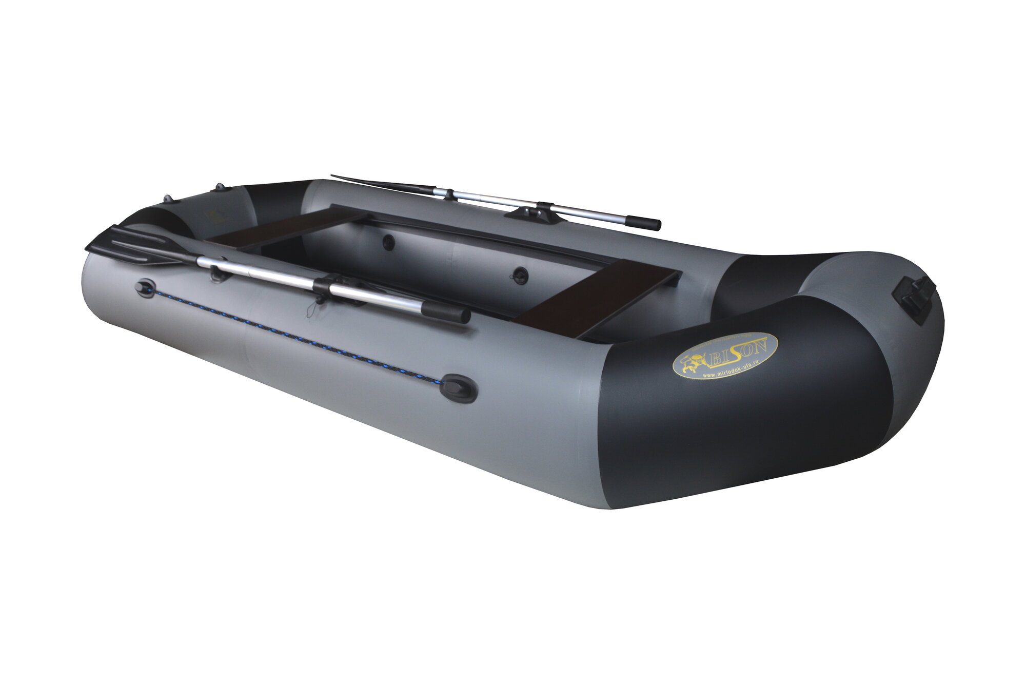 Надувная двухместная пвх лодка Бизон-285 (серый/черный) информация: