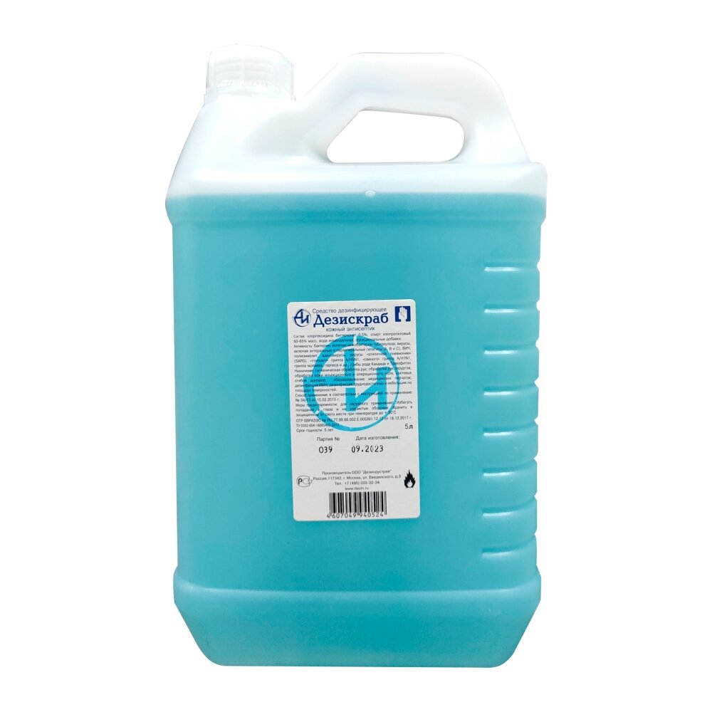 Дезиндустрия cредство дезинфицирующее кожный антисептик, Дезискраб, 5000 мл, тип крышки: винтовая информация: