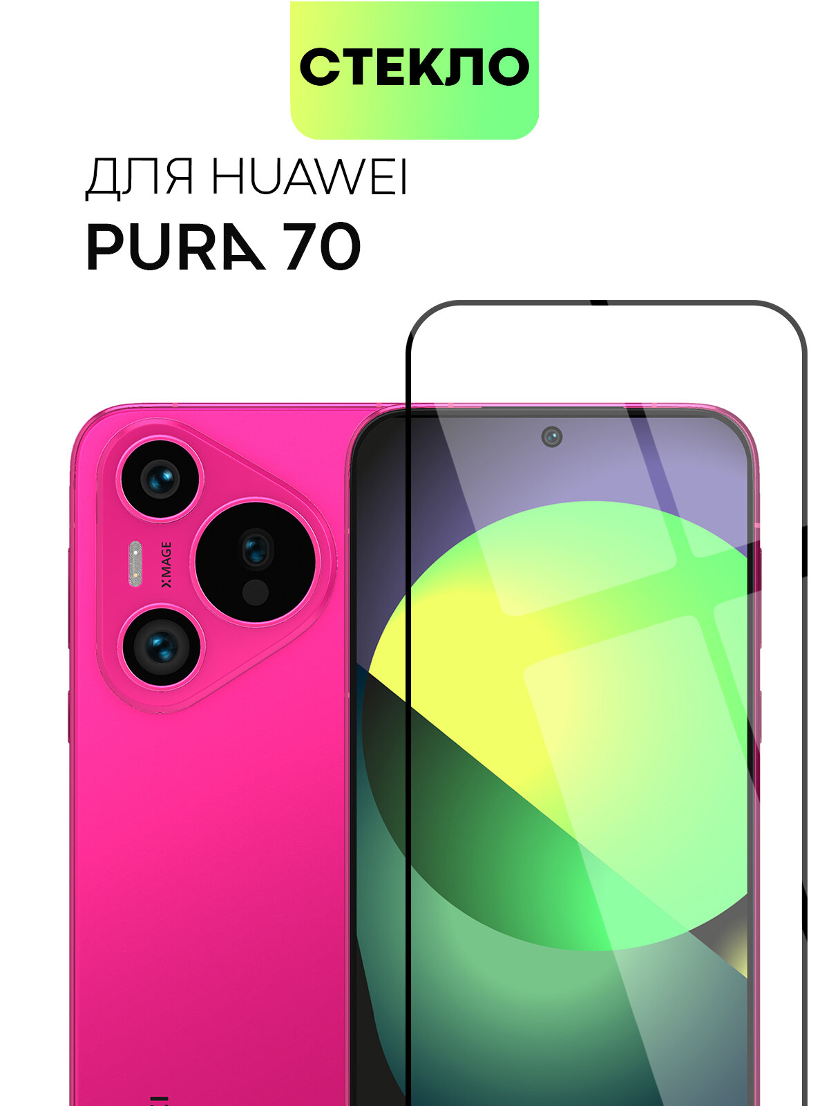 Защитное стекло BROSCORP на Huawei Pura 70 (Хуавей Пура 70), глянцевое с чёрными рамками информация: