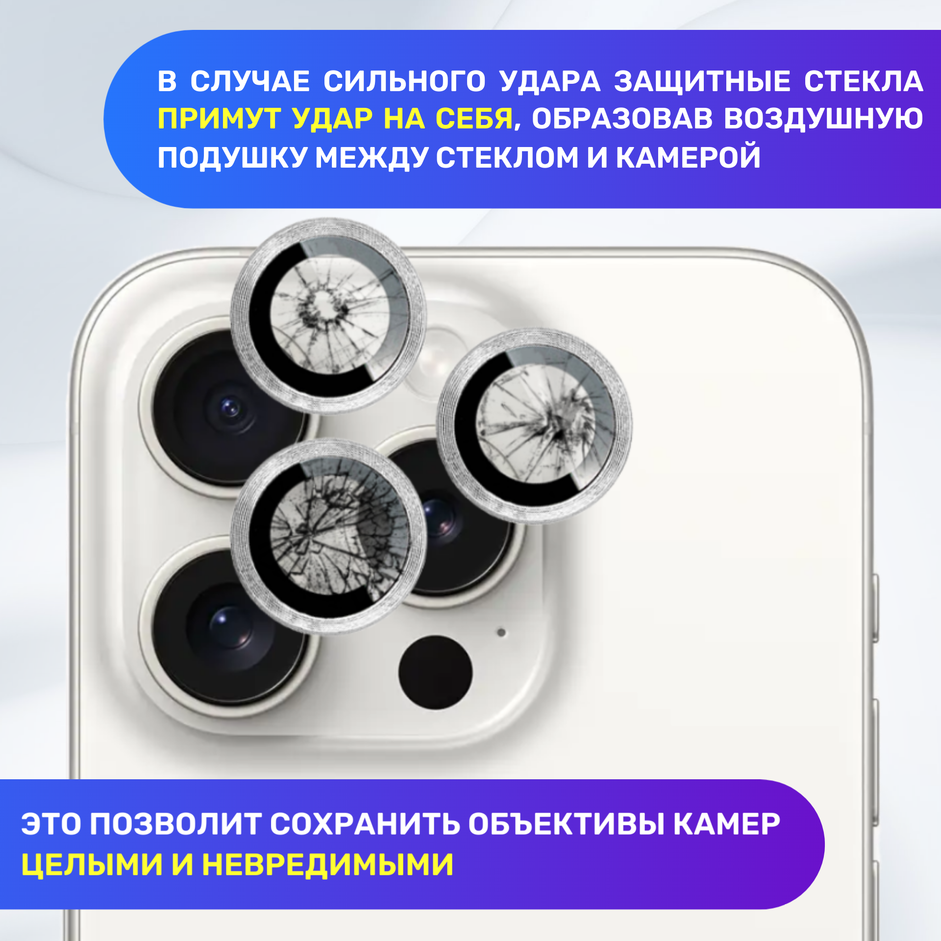 Линзы (стекла) для защиты камеры iPhone 14/15/16 Pro/Pro Max Белые / Серебрситые информация: