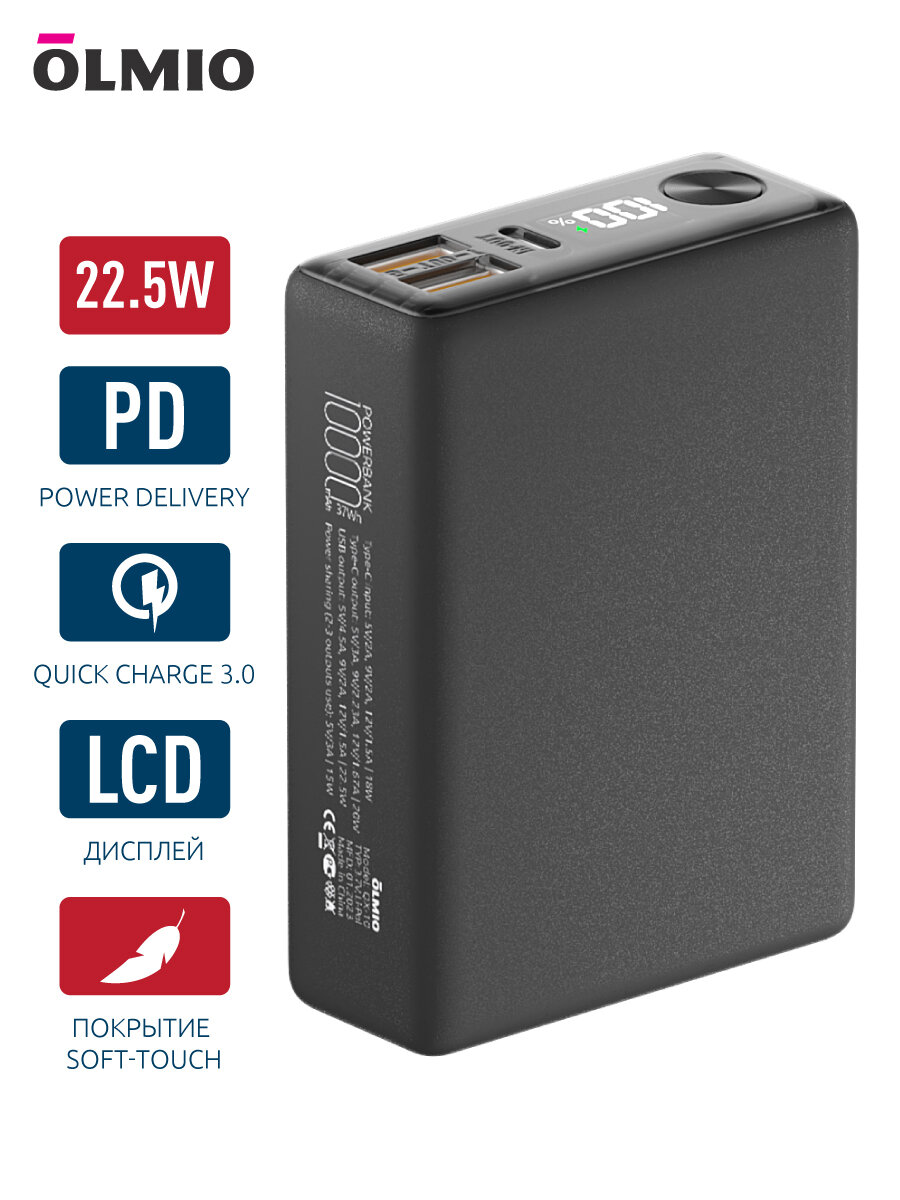 Внешний аккумулятор QX-10, 10000mAh, графит, OLMIO информация:
