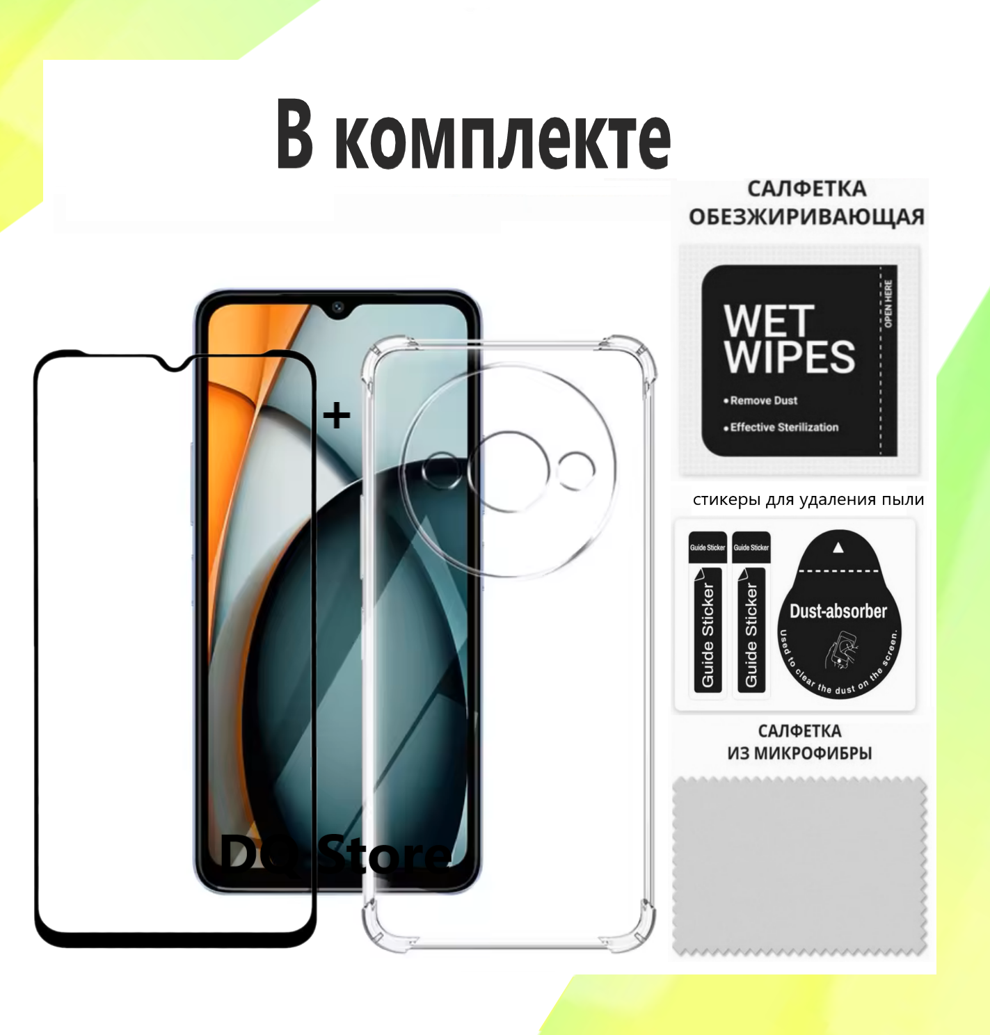 Комплект 2 в 1: Прозрачный противоударный cиликоновый чехол + защитное стекло для Xiaomi Redmi A3 / Ксяоми Редми А3. Бампер с защитой камеры и усиленными углами. информация: