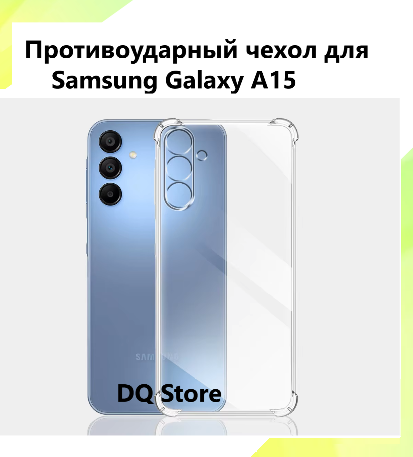 Прозрачный противоударный cиликоновый чехол для Samsung Galaxy A15 / Самсунг Гэлакси A15. Бампер с защитой камеры и усиленными углами. информация: