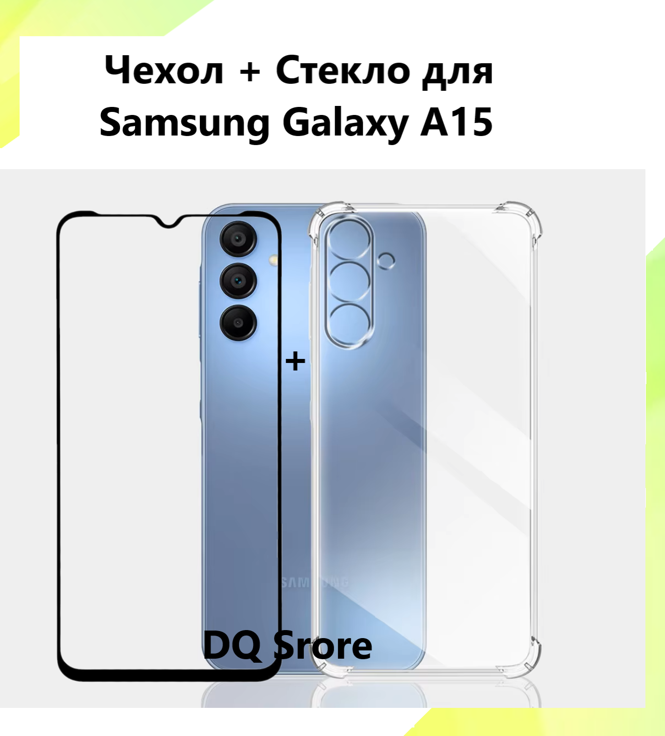 Комплект 2 в 1: Прозрачный противоударный cиликоновый чехол + защитное стекло для Samsung Galaxy A15 / Самсунг Гэлакси A15. Бампер с защитой камеры и усиленными углами. информация: