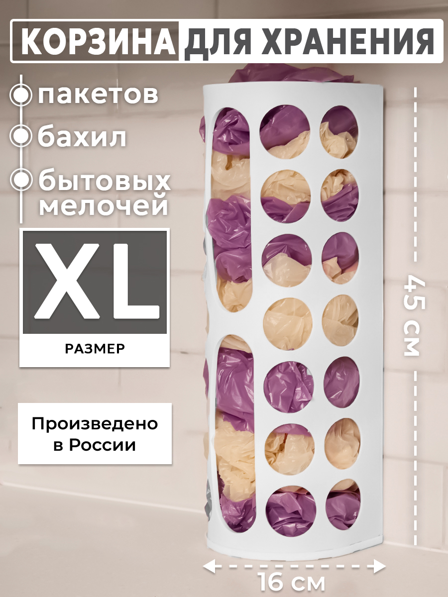 | Комплектация | Корзина для пакетов - 1 шт; Самоклеящиеся крючки - 2 шт |