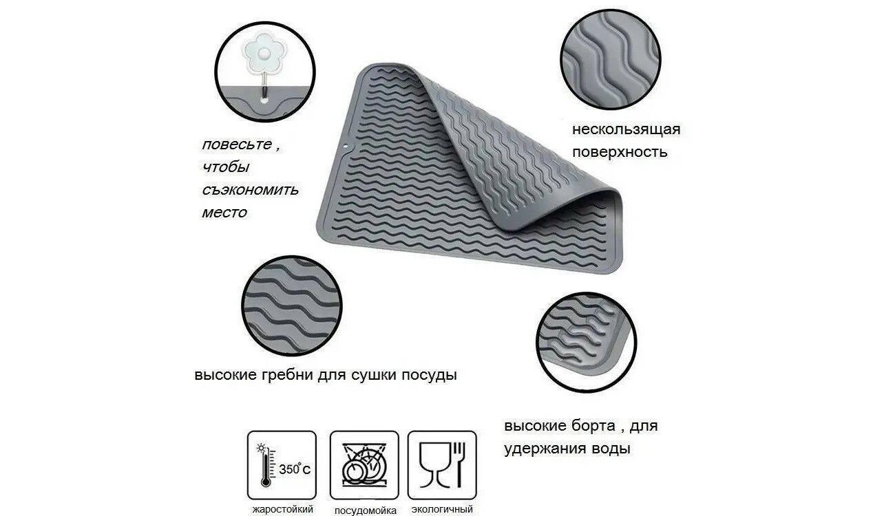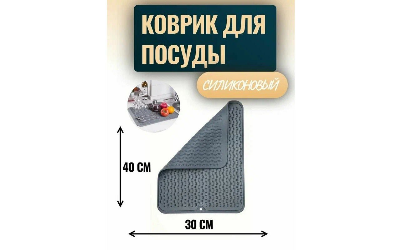 10 цен на Коврик силиконовый для сушки посуды и продуктов, 40х30 см серый