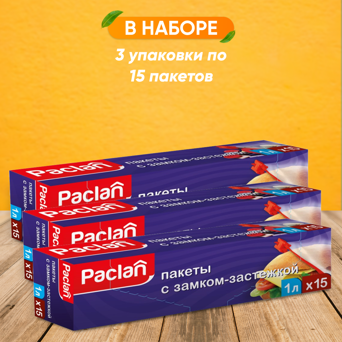 Зип пакеты Paclan для хранения и замораживания продуктов с замком застежкой 1 л 15 шт. 3 упаковки информация:
