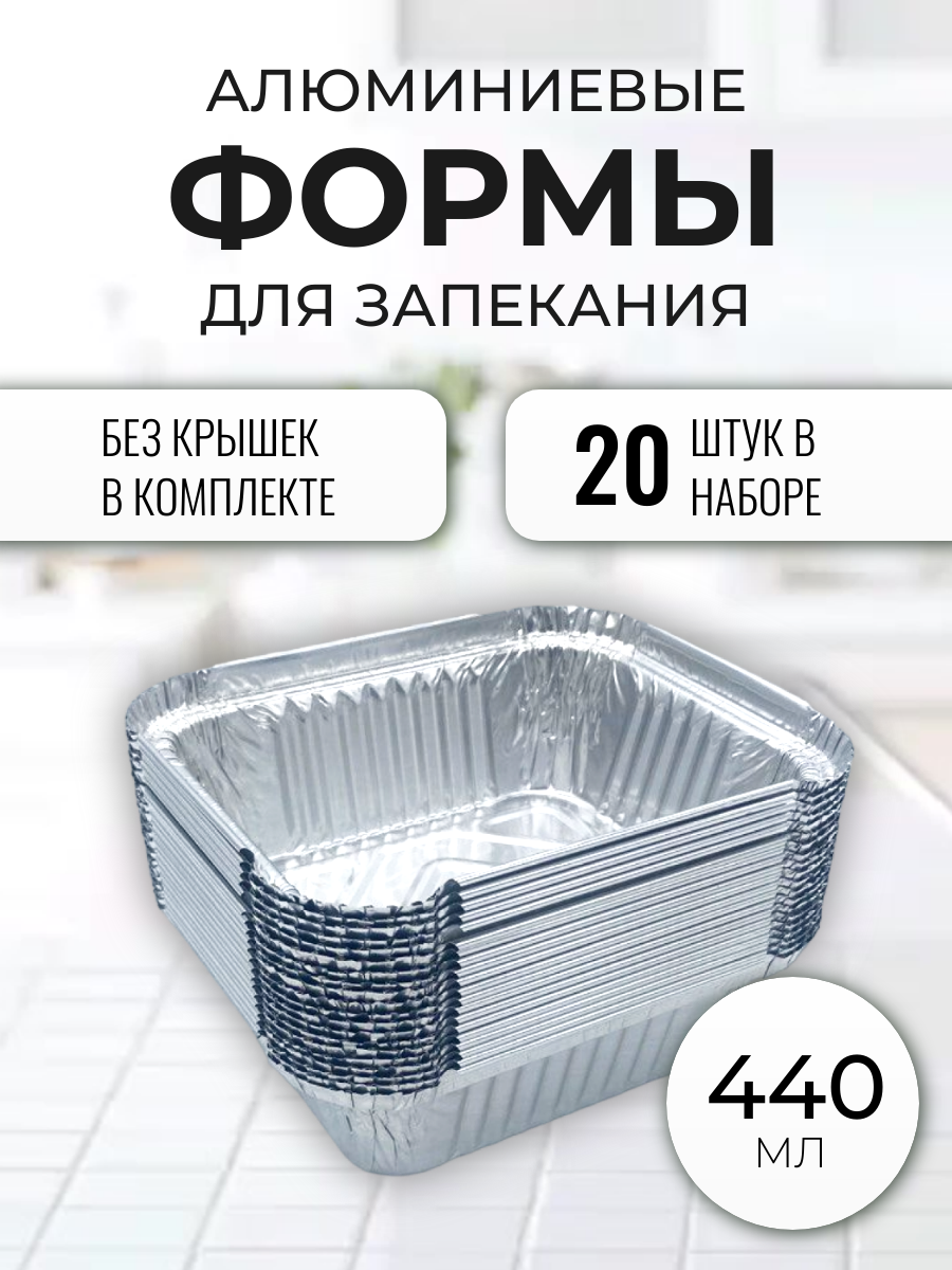 Алюминиевые формы для запекания "Домовушка", 14,4х11,9х4 см, 440мл без крышки, 20шт информация: