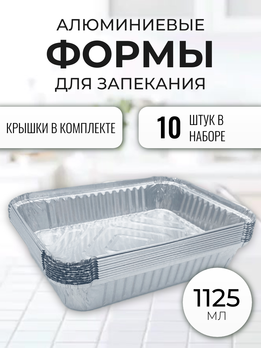 10 цен на Алюминиевые формы для запекания "Домовушка", 22,5х17,5х3,5, 1125мл с крышкой, 10 штук