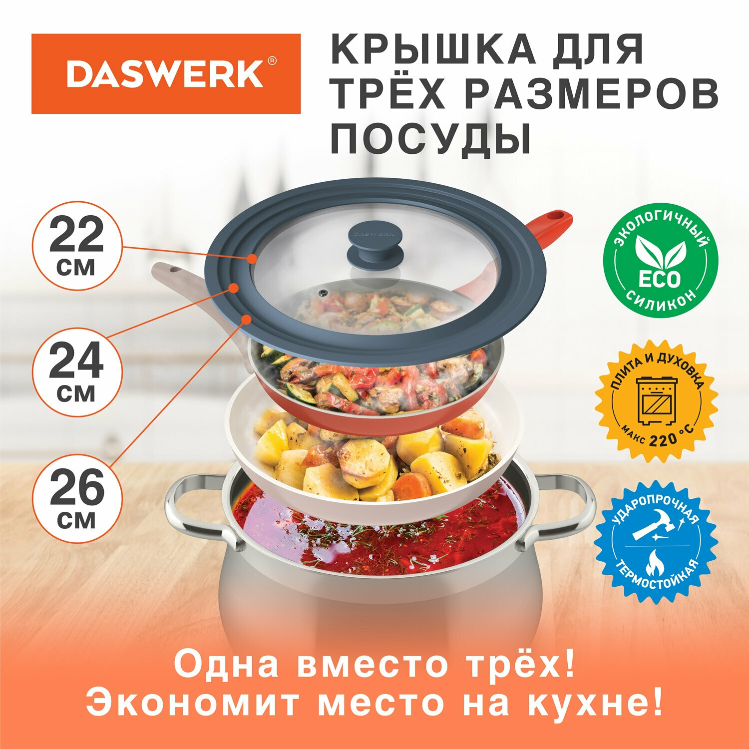 Мы выбрали 10 лучших цен на Крышка для любой сковороды и кастрюли универсальная 3 размера (22-24-26см) антрацит, DASWERK, 607586. Перед тем как купить Крышка для любой сковороды и кастрюли универсальная 3 размера (22-24-26см) антрацит, DASWERK, 607586 посмотрите найденные предложения из Яндекс Маркета и других сайтов на основе XML фидов.