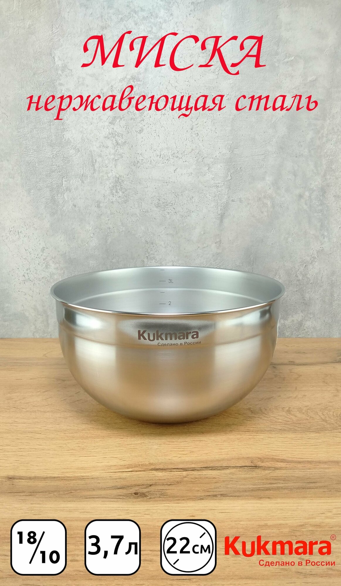 Миска Kukmara 3.7 л из нержавеющей стали марки 304 (18/10) информация:
