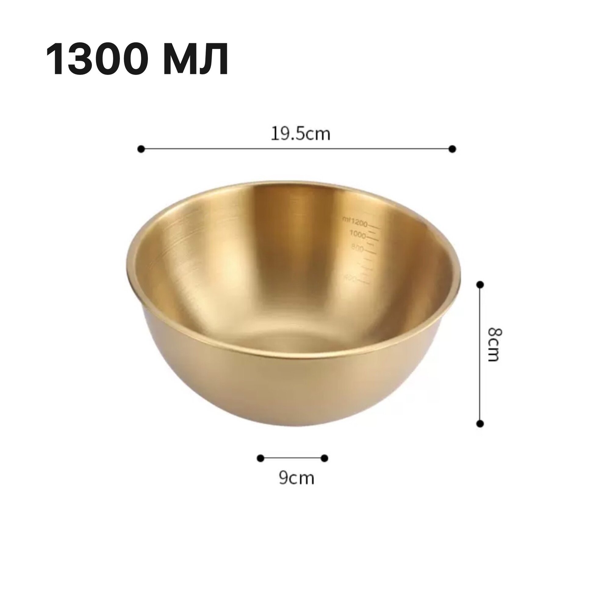 Миска золотая металлическая 1.3 л /салатник из нержавеющей стали золотой 1300 мл информация: