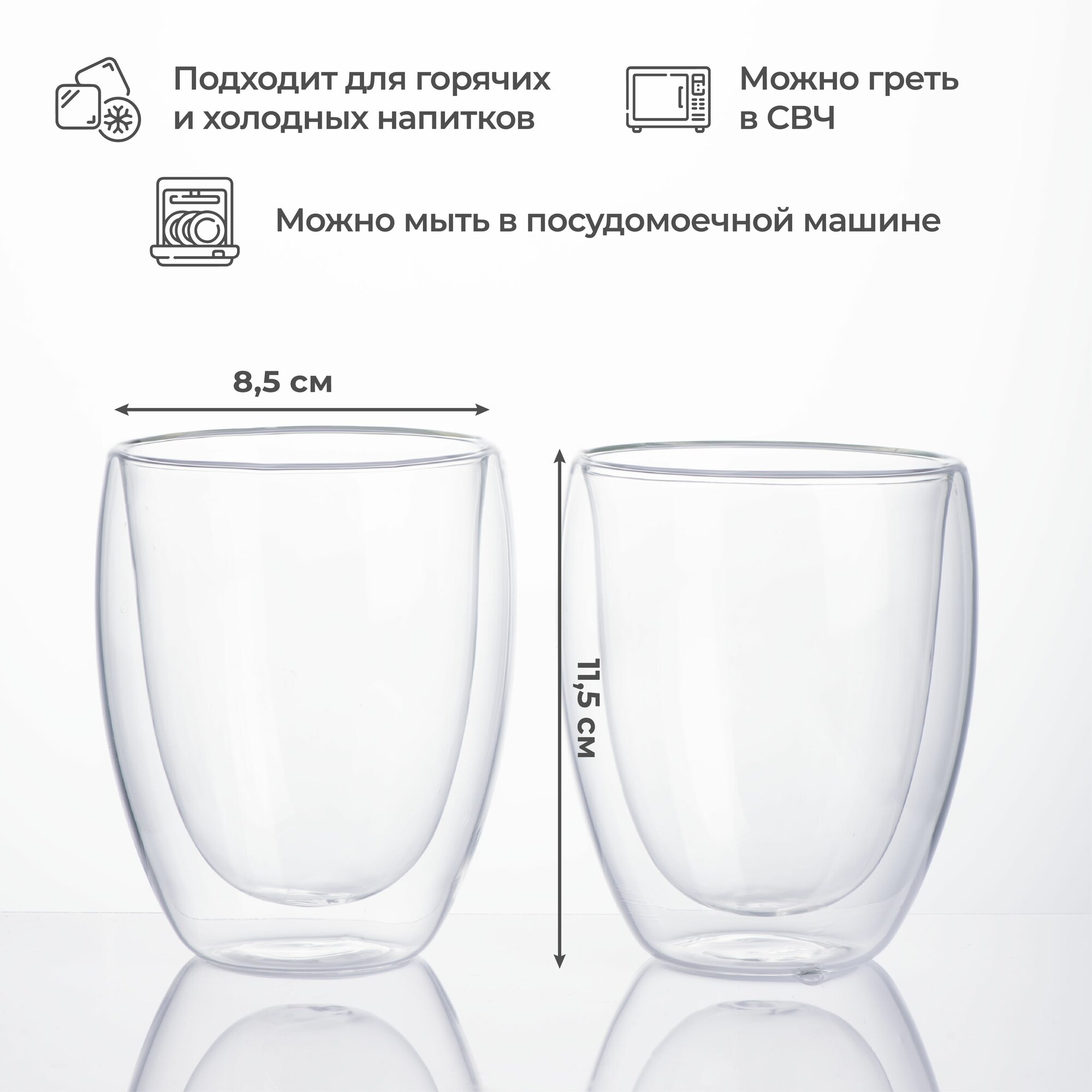 Набор стаканов с двойными стенками из боросиликатного стекла Unifico 350 мл (2 шт) информация: