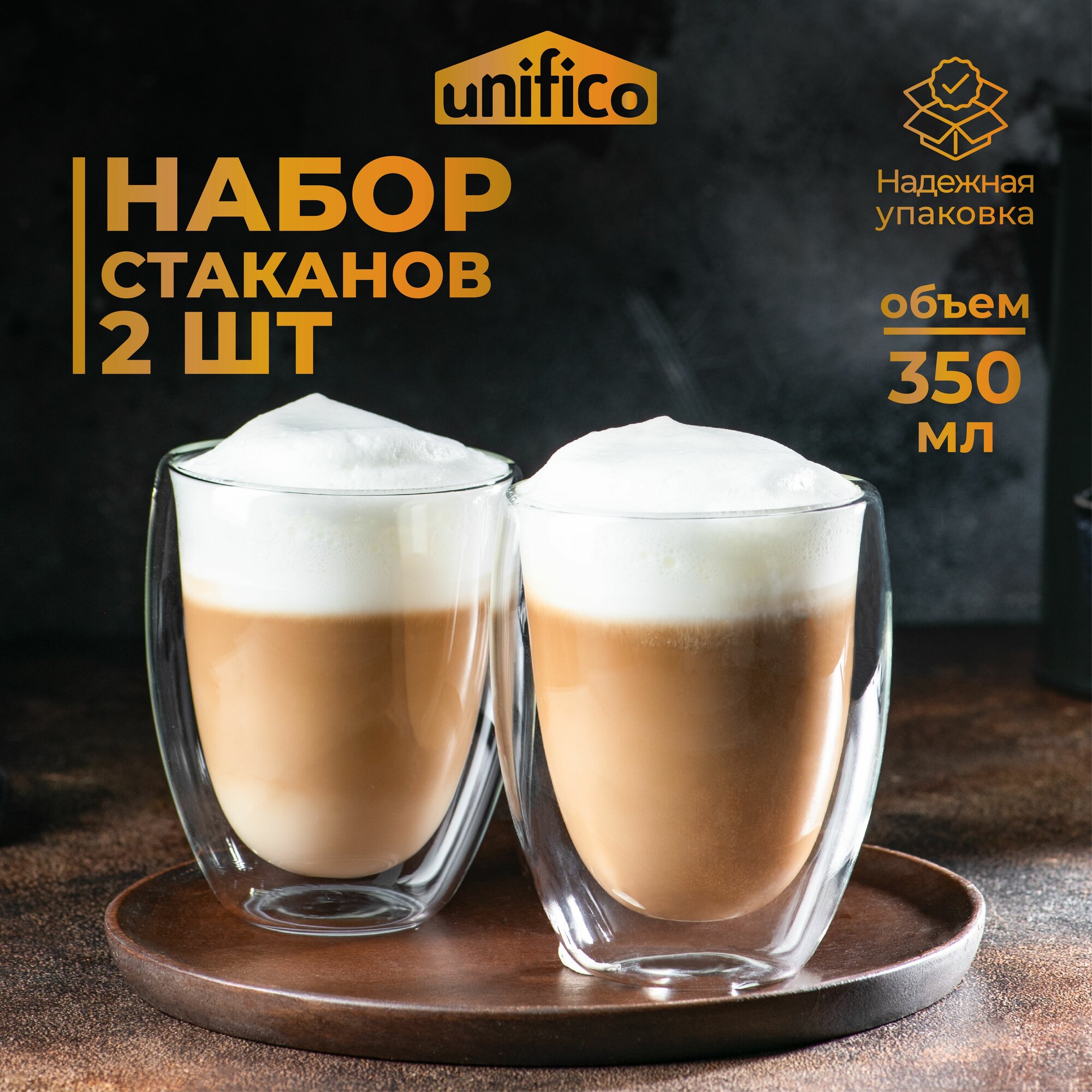 10 цен на Набор стаканов с двойными стенками из боросиликатного стекла Unifico 350 мл (2 шт)