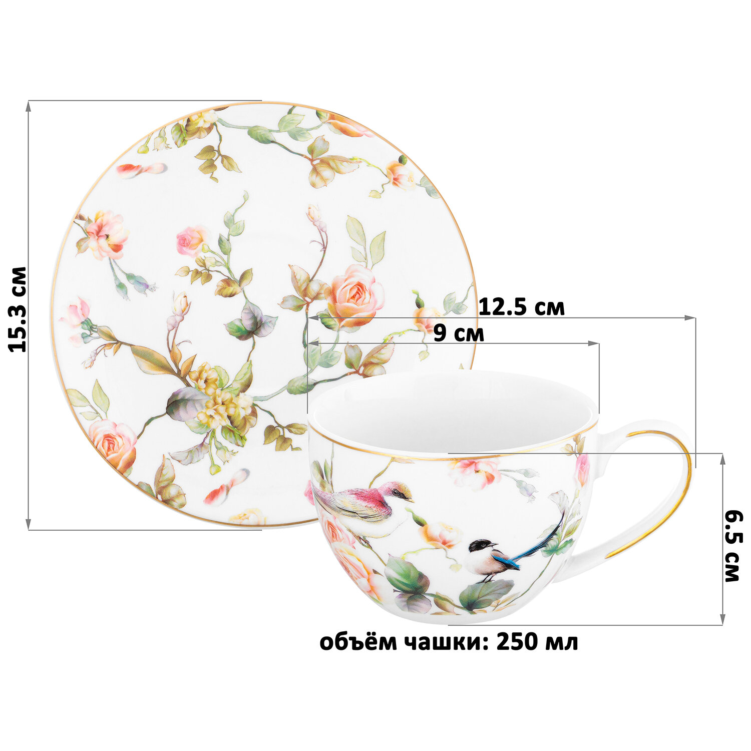 Чайная пара, чашка с блюдцем, кружка для чая, кофе 2 предмета 250 мл Elan Gallery Певчие птички информация: