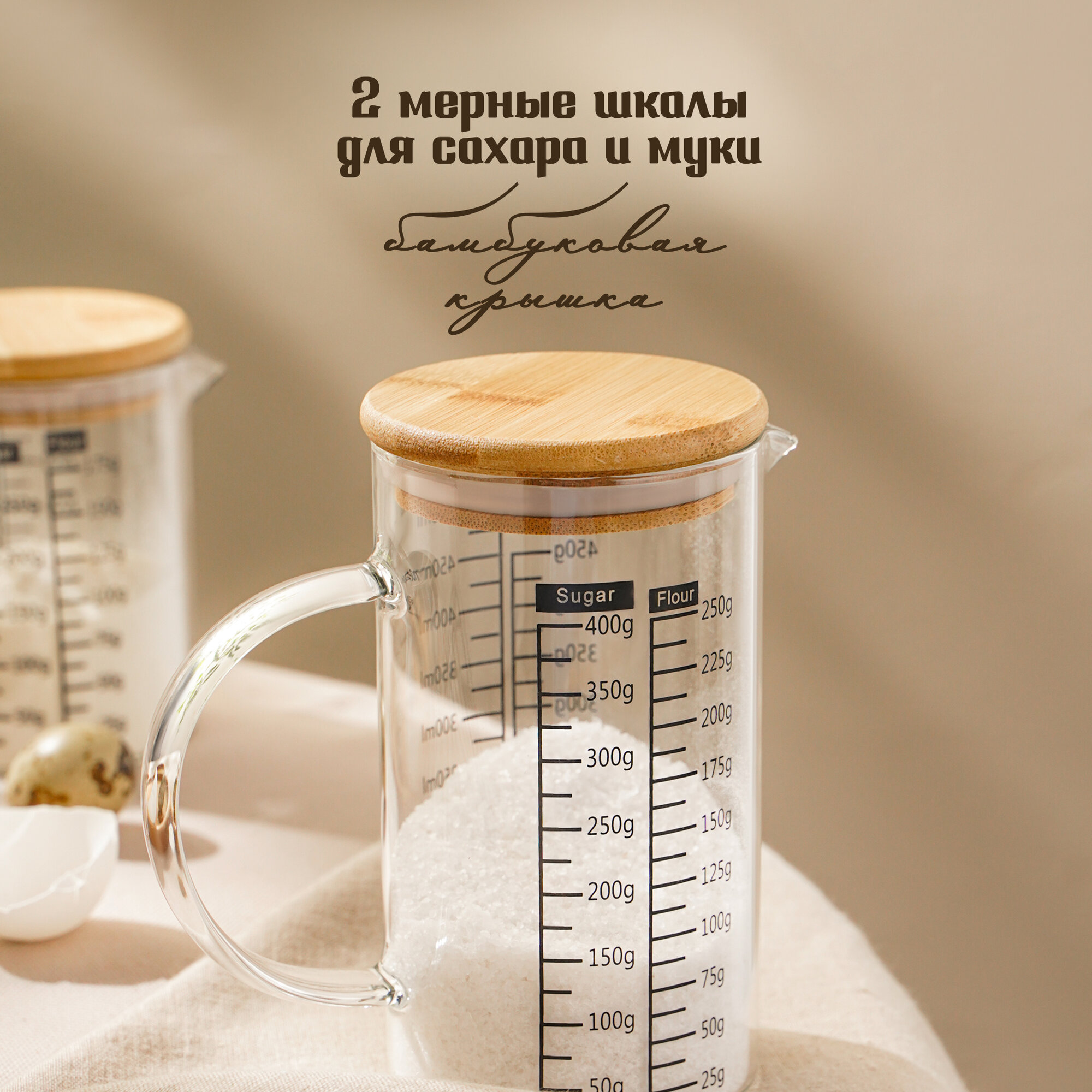 10 цен на Кувшин мерный с бамбуковой крышкой "Эко" 500 мл, 13х8х13,7 см