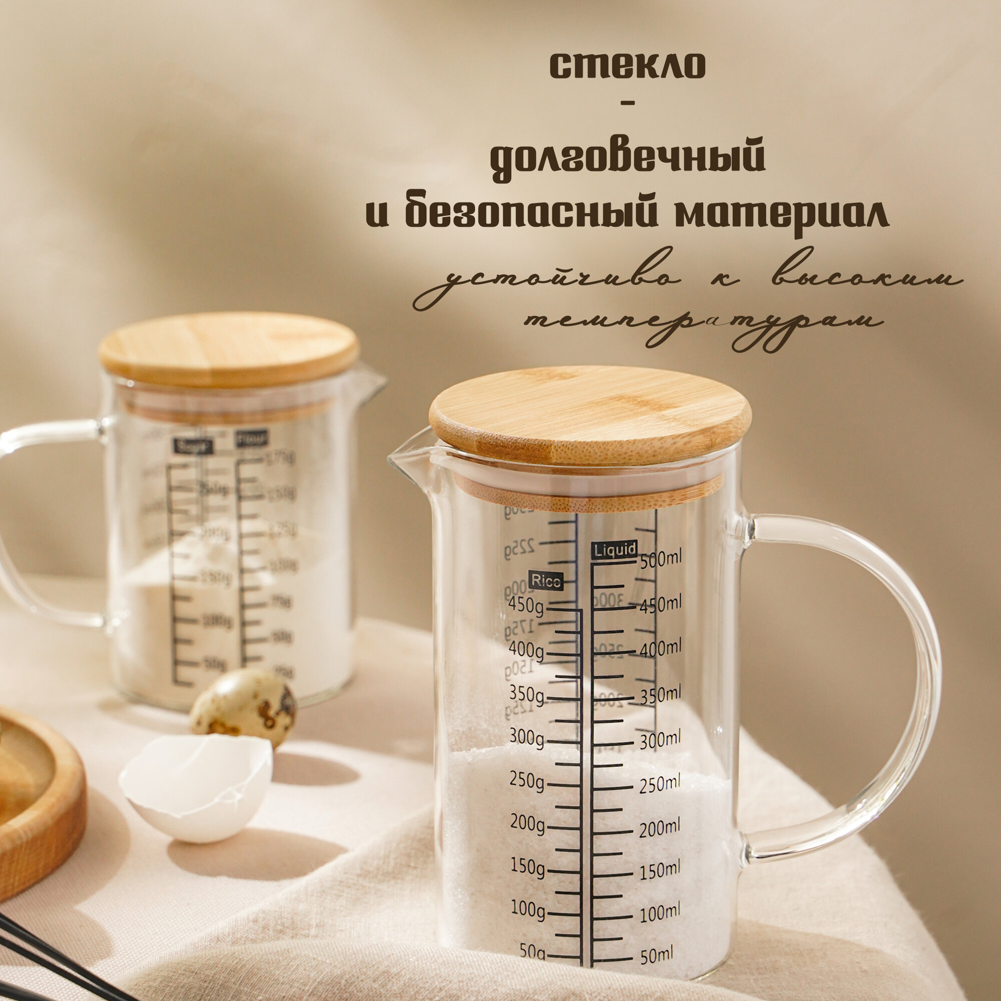 Кувшин мерный с бамбуковой крышкой "Эко" 500 мл, 13х8х13,7 см информация: