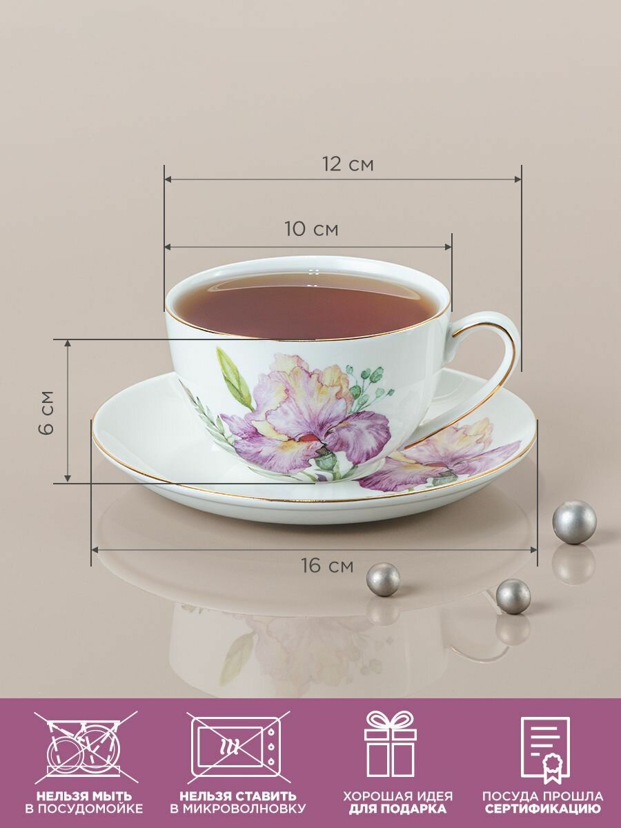 Чайный набор из фарфора Lefard "Irises" на 6 персон 12 предметов, чашка 300 мл