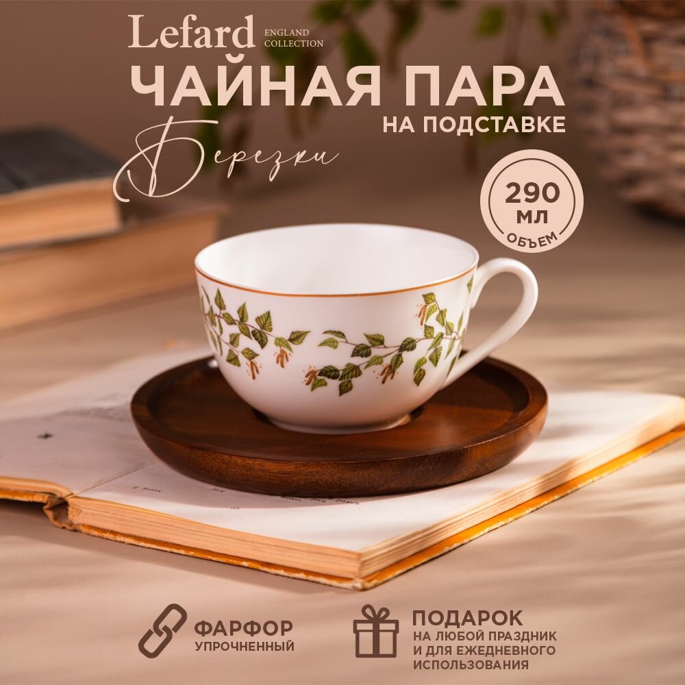 Чайная пара Lefard "Березки" на деревянной подставке 290 мл информация: