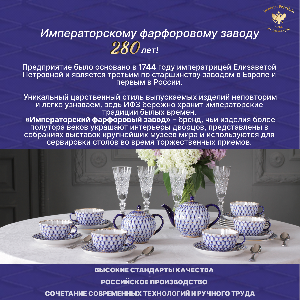 Чайная пара Императорский фарфоровый завод Кобальтовая клетка, форма Тюльпан, 2 предм.
