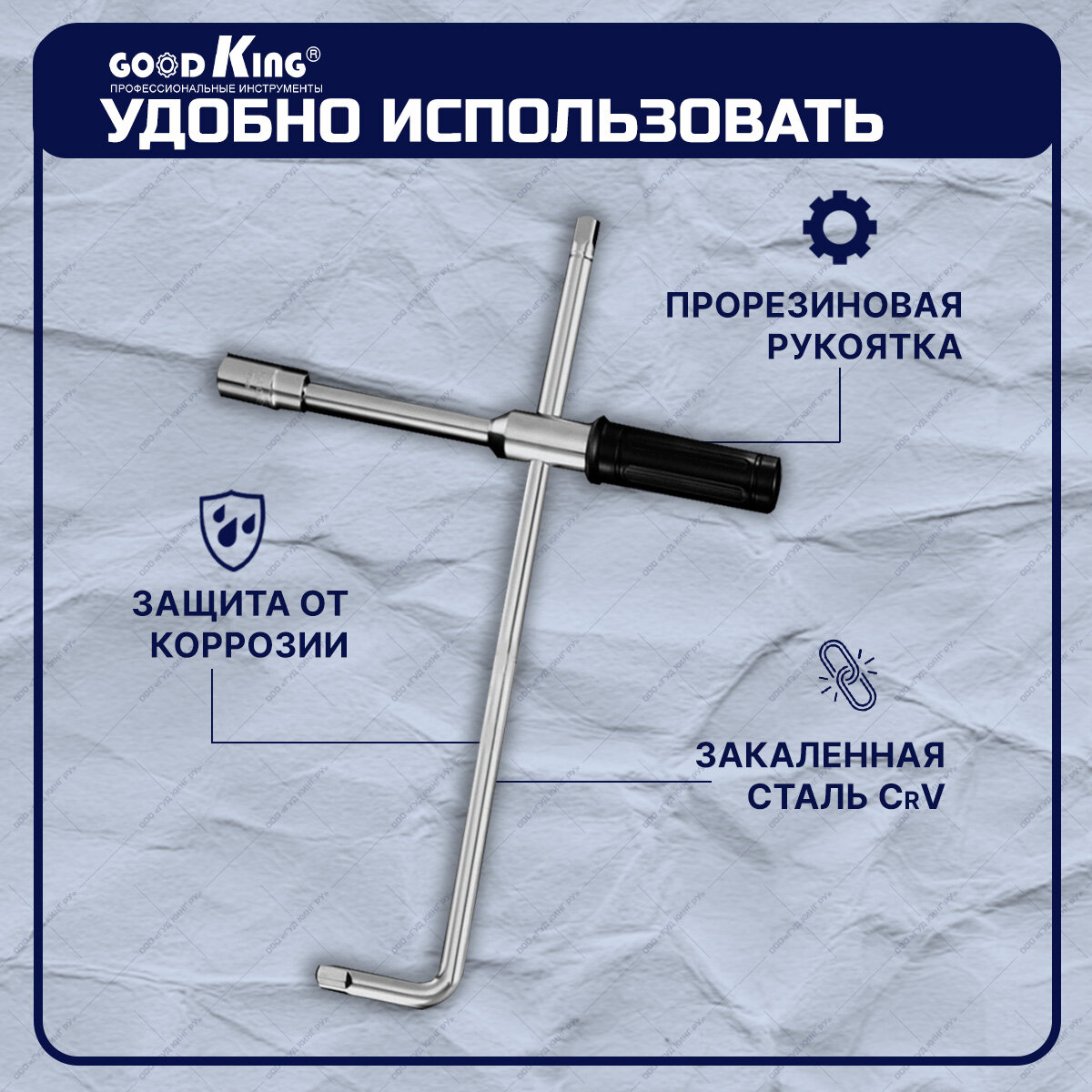 Отзывы на Ключ крест баллонный инерционный GOODKING KB-10005, баллонный ключ 1/2", торцевые головки 17-19 мм, 21-23 мм