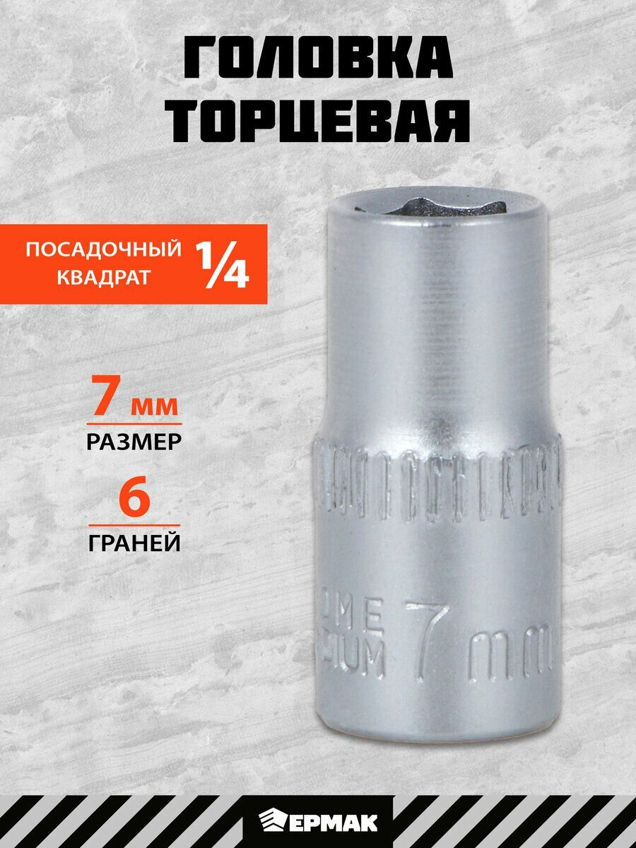 Головка торцевая ермак, 6 граней, 7 мм, 1/4", хром-ванадий