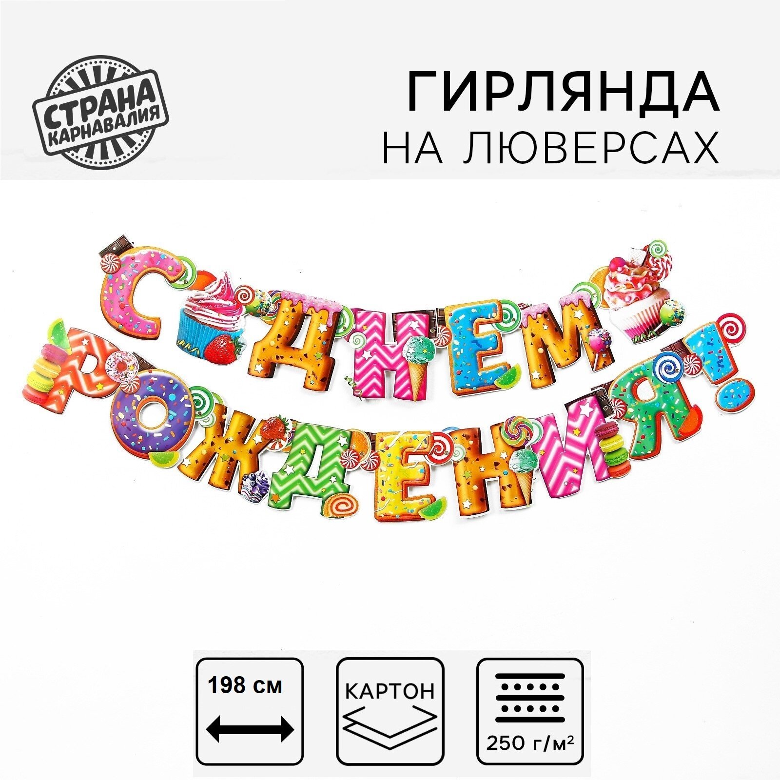 Отзывы на Гирлянда на люверсах "С Днем Рождения!", пирожное, дл 198 см.. Страна Карнавалия