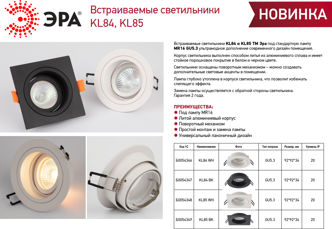 Встраиваемый светильник ЭРА KL84 BK черный информация: