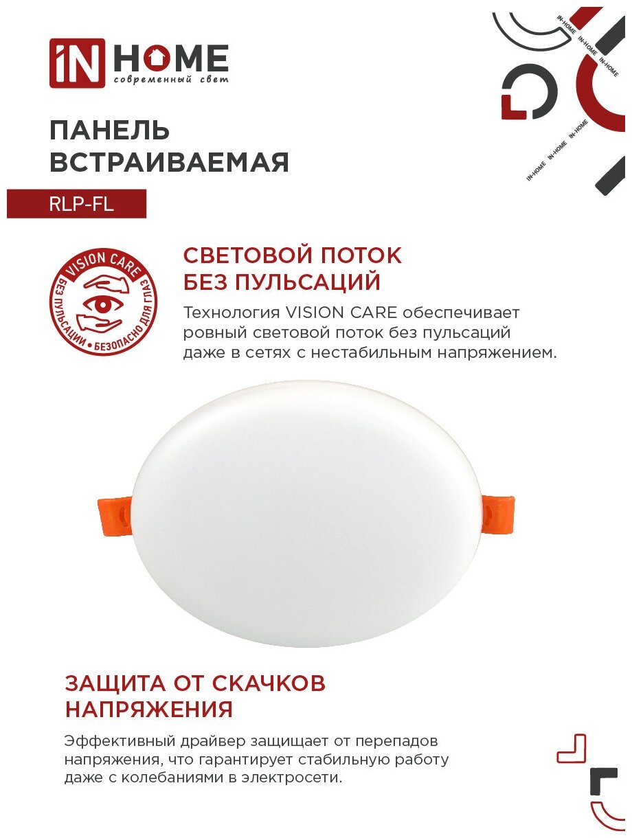 Отзывы на Панель светодиодная встраиваемая безрамочная RLP-FL 18Вт 230В 4000К 1260Лм 120мм с рег. монтаж. 50-1