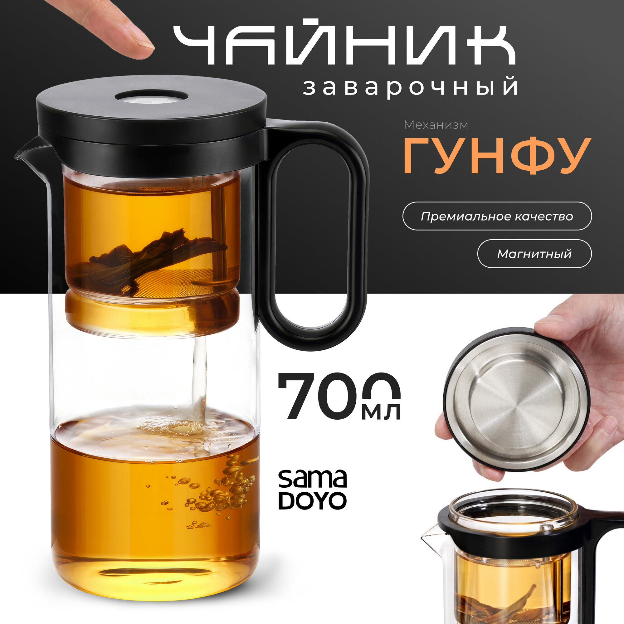 Заварочный чайник Гунфу с фильтром проливной SAMADOYO 500 мл, Стеклянный Чайник с магнитом, Типод с ситечком и кнопкой магнитный, Заварник для горячих напитков стекло 5 970 ₽