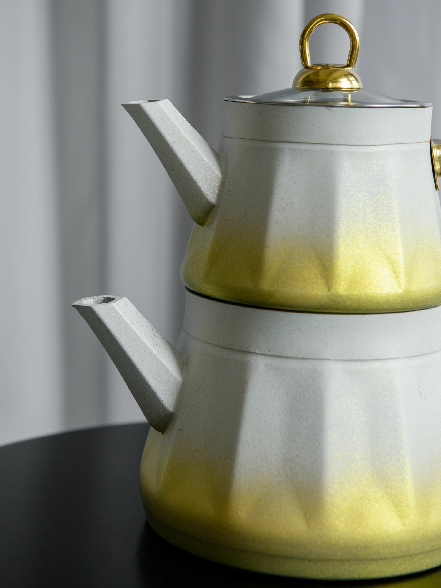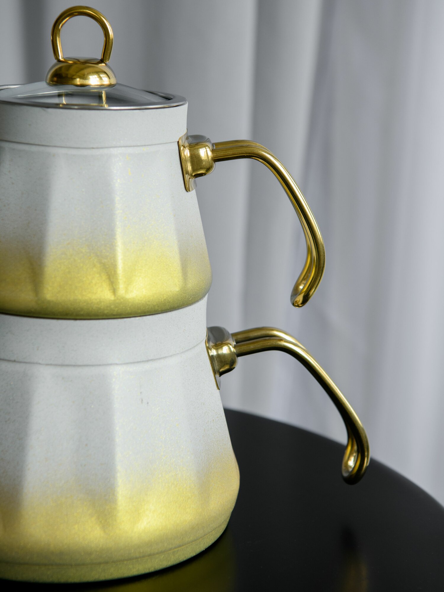 10 цен на Двойной чайник бело-золотой с металлической ручкой 1,1 л/ 2,1 л