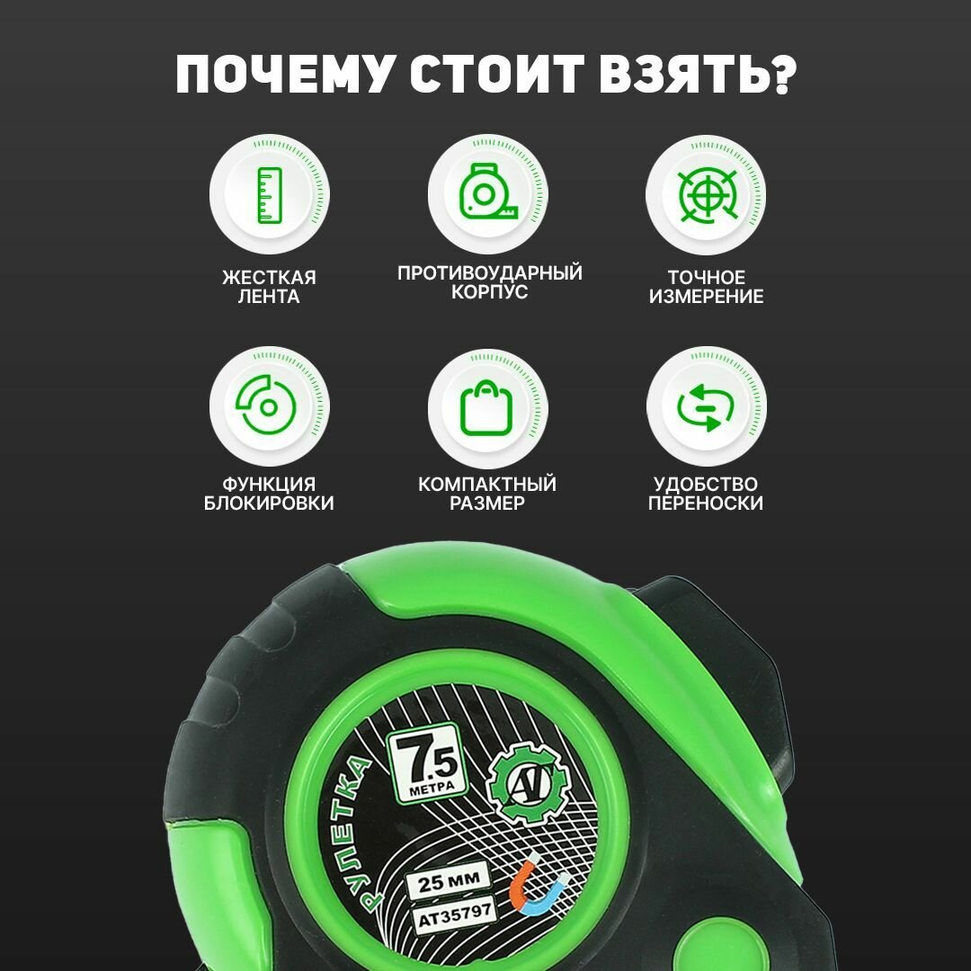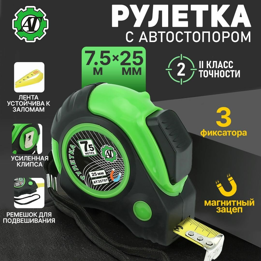 10 цен на Рулетка измерительная 7,5м х 25мм с магнитным зацепом, автостопором и зажимом для пояса
